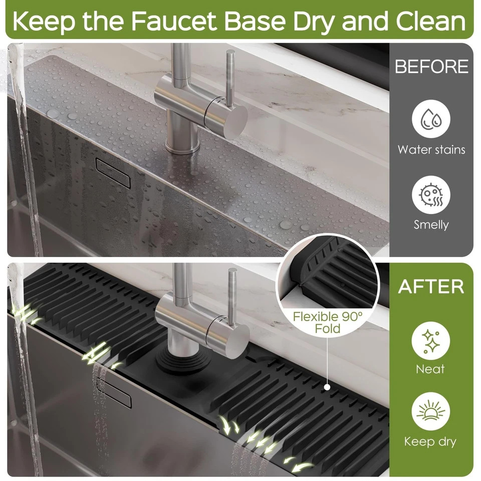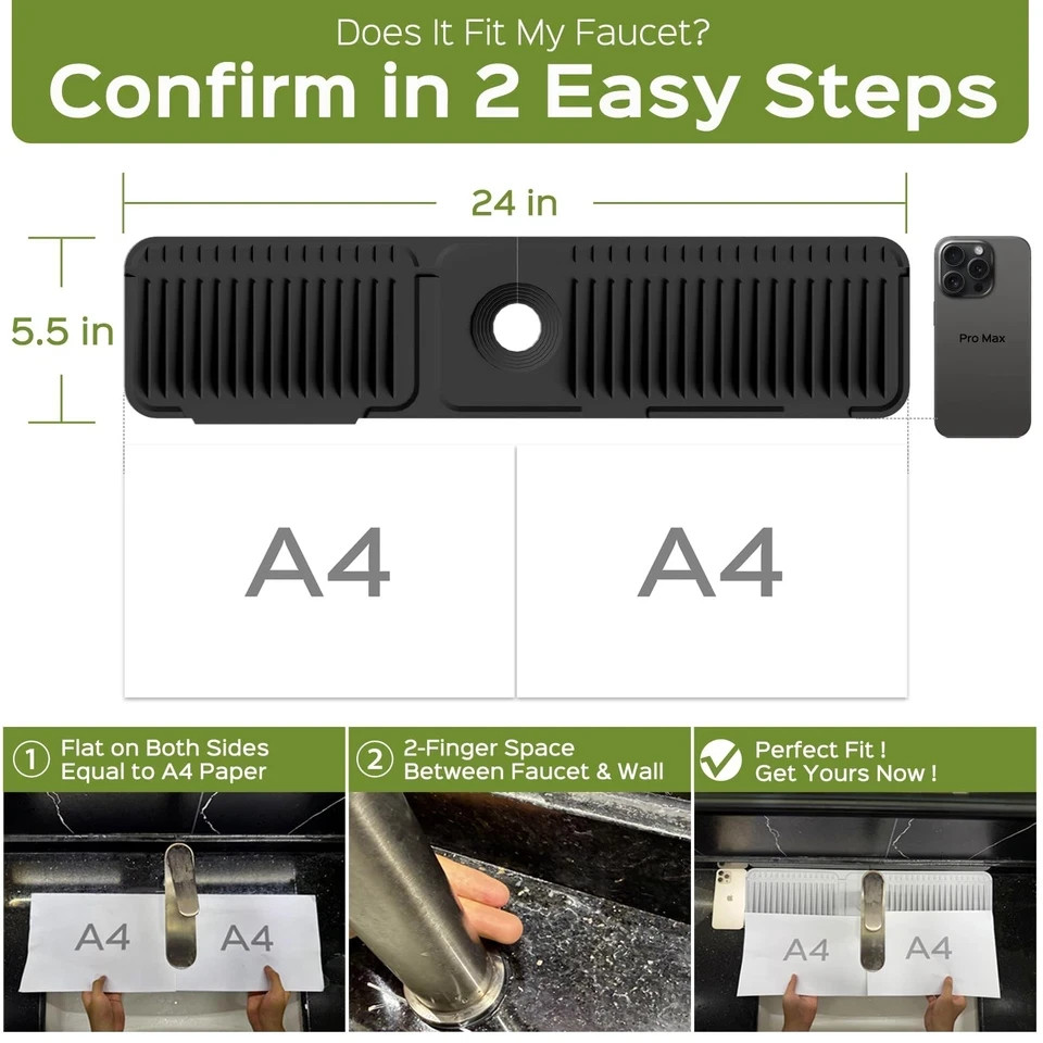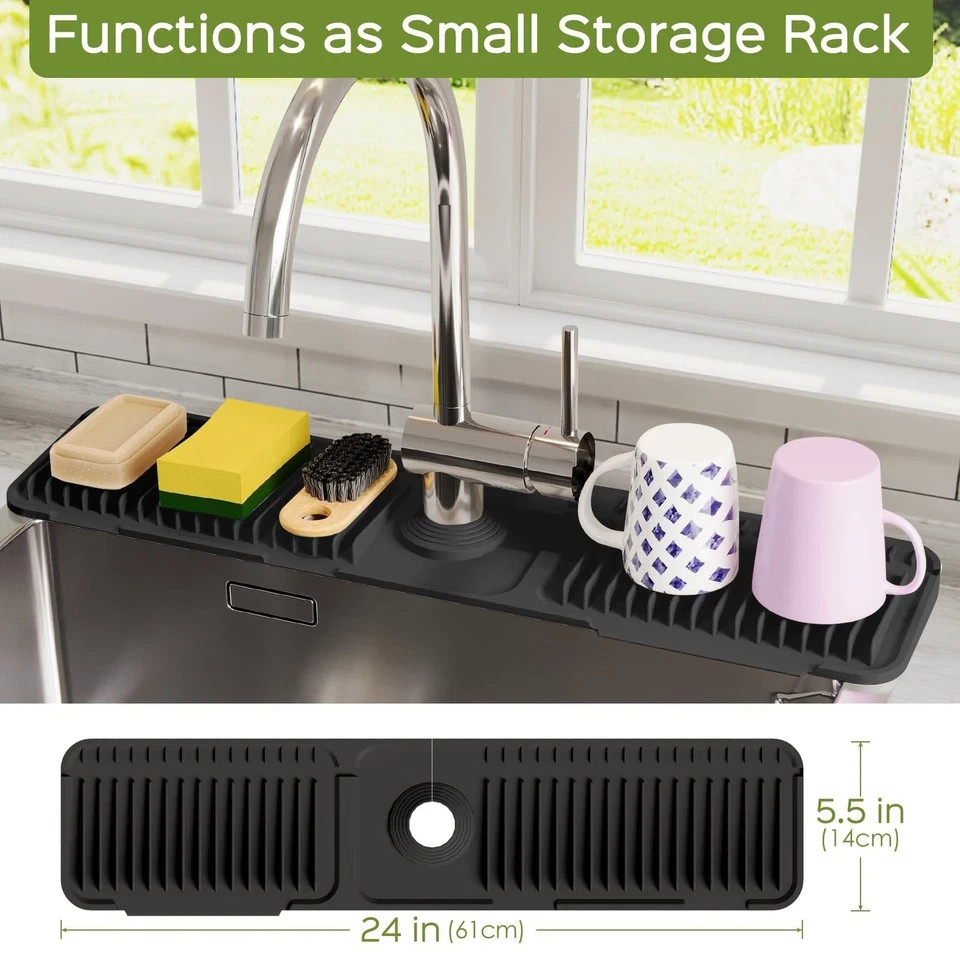 • 24 Inch Silicone Faucet Mat for Kitchen Sink Splash Guard 24" x 5.5", Black