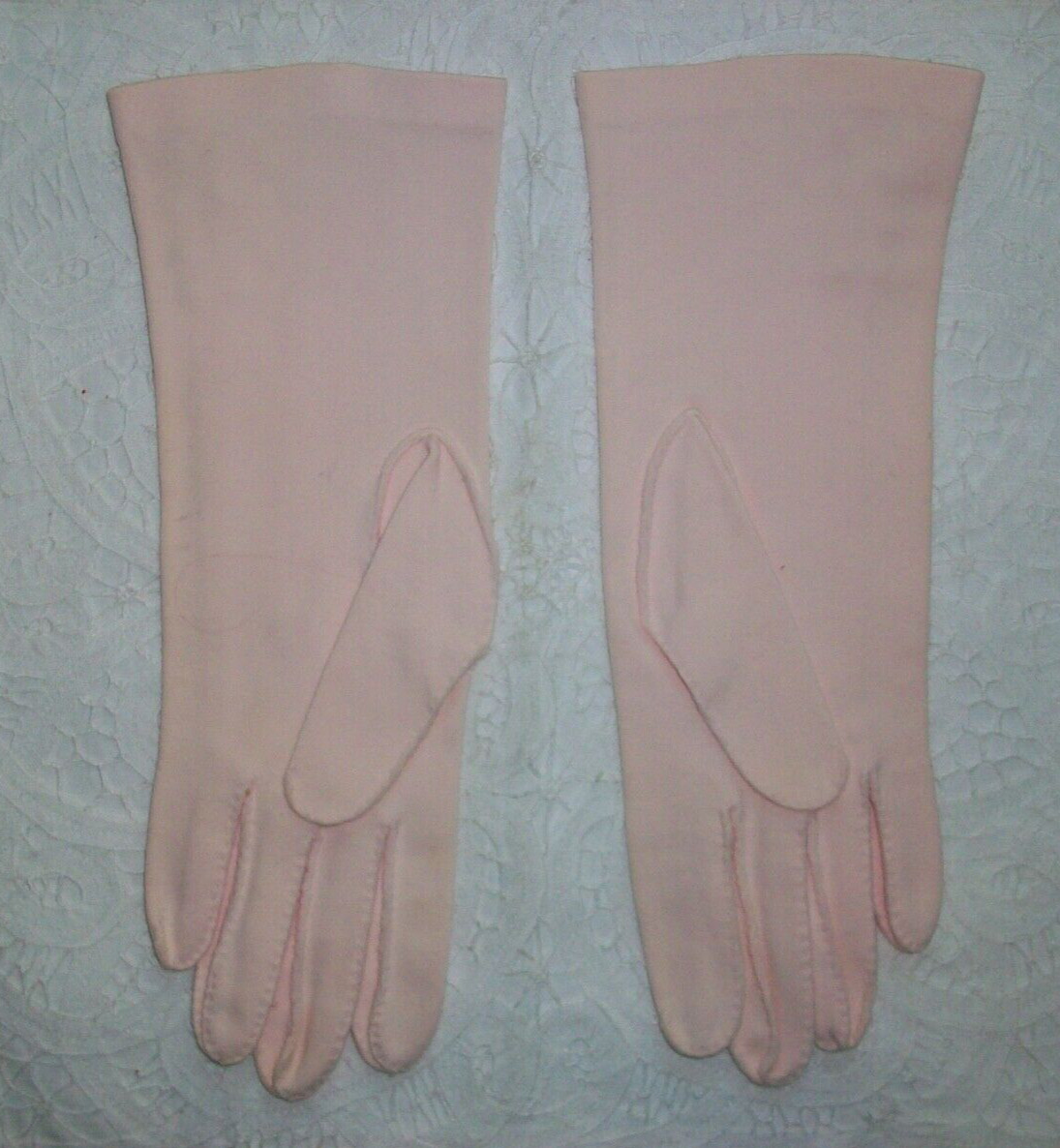 как выглядит Vintage 50s 60s VAN RAALTE Pale Pink Cotton Gloves Tiny Buttons 6 1/2 фото