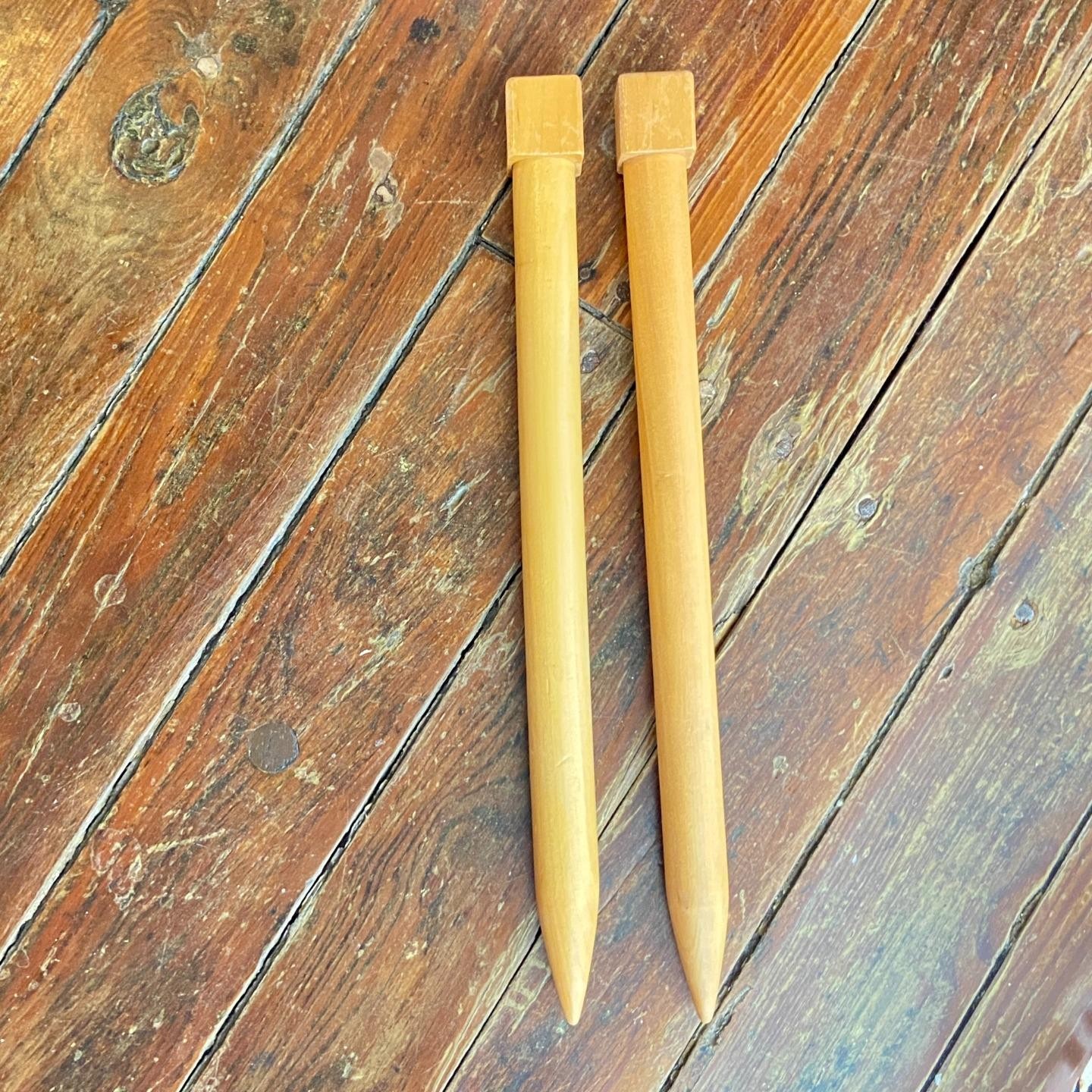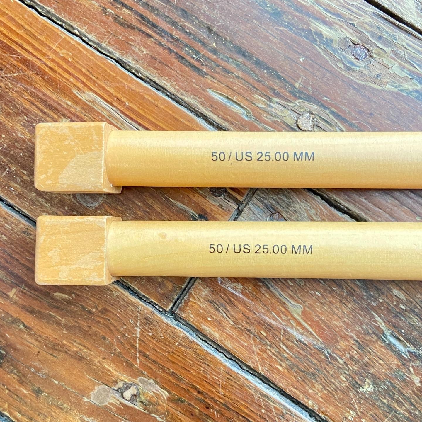 Pair of Jumbo Wooden US 50 25mm Straight Knitting Needles EUC