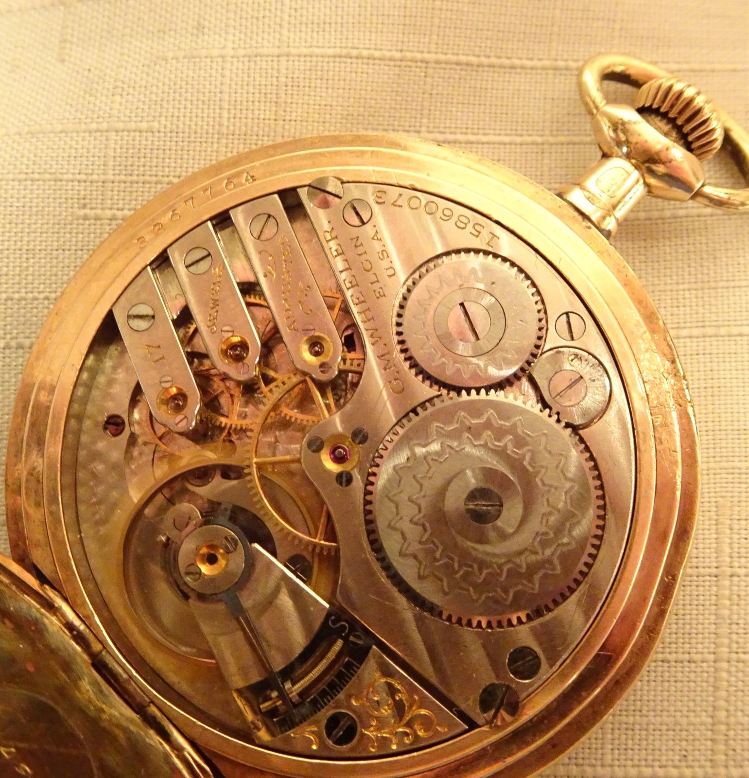 Elgin Pocket Watch 16S 17J Hunter Gold Filled 3 Finger Bridge Serviced Wheeler