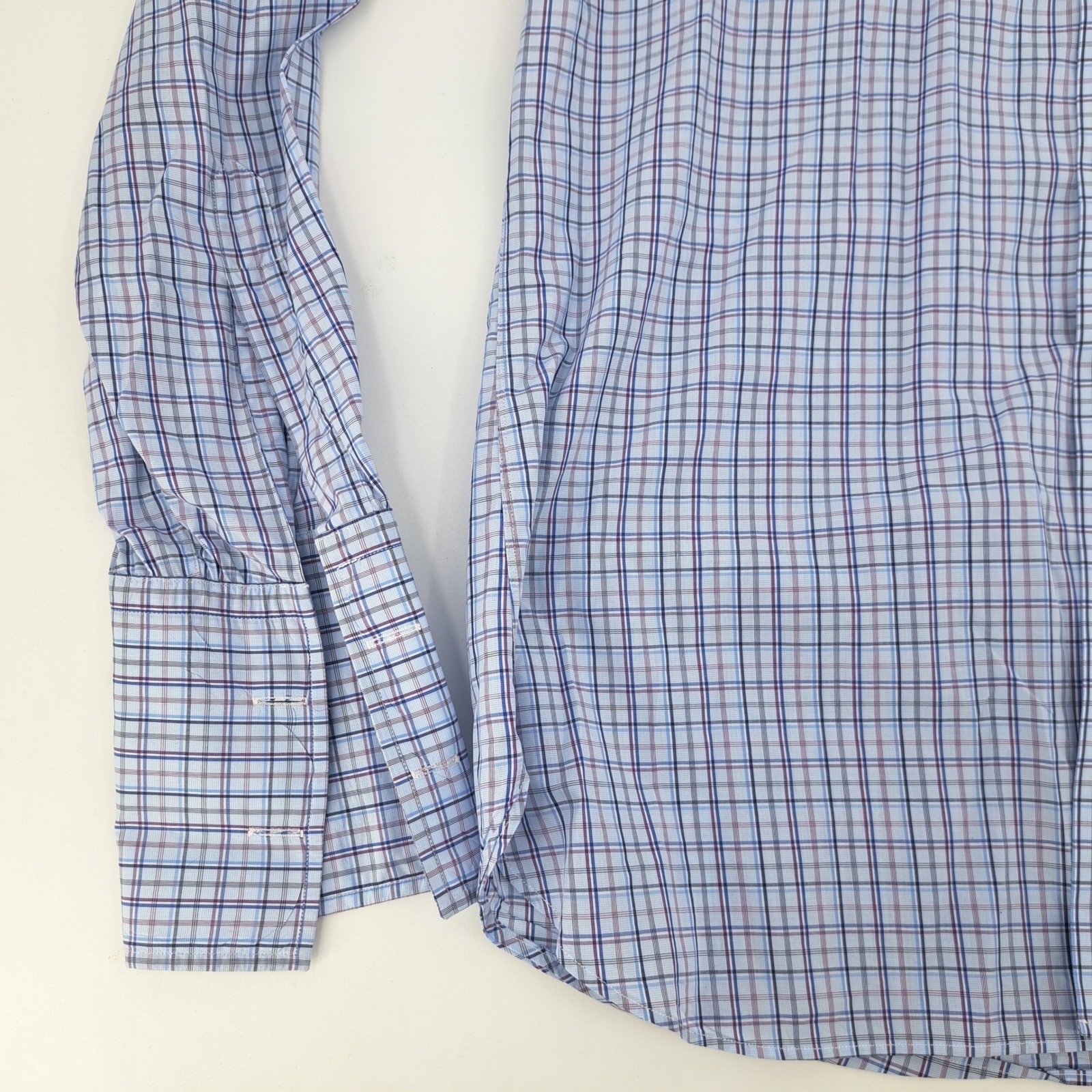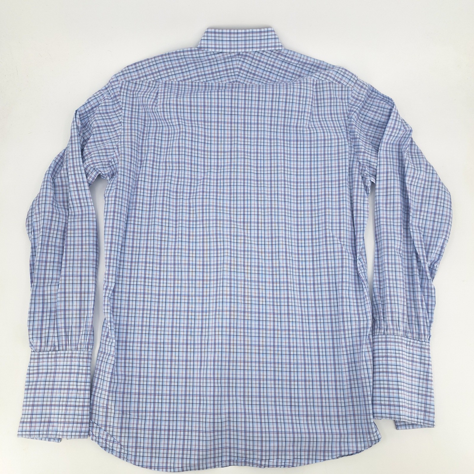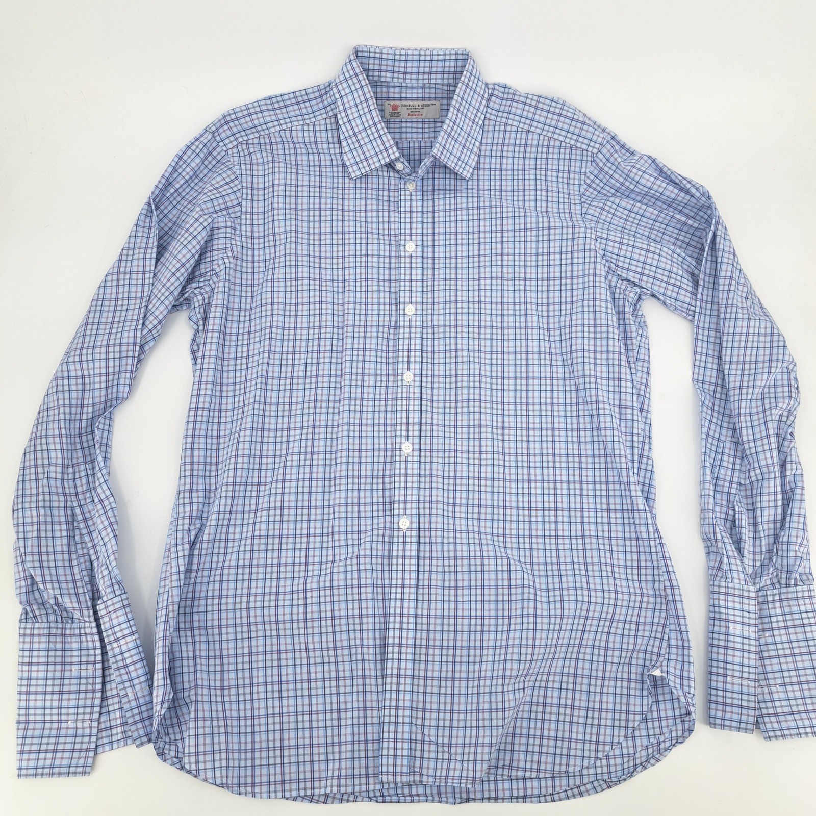 как выглядит Turnbull Asser Dress Shirt Mens 16.5 Cotton Blue Tattersall Plaid French Cuff фото