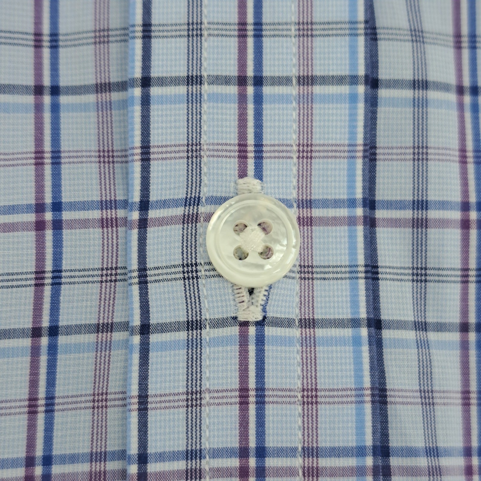 Turnbull Asser Dress Shirt Mens 16.5 Cotton Blue Tattersall Plaid French Cuff