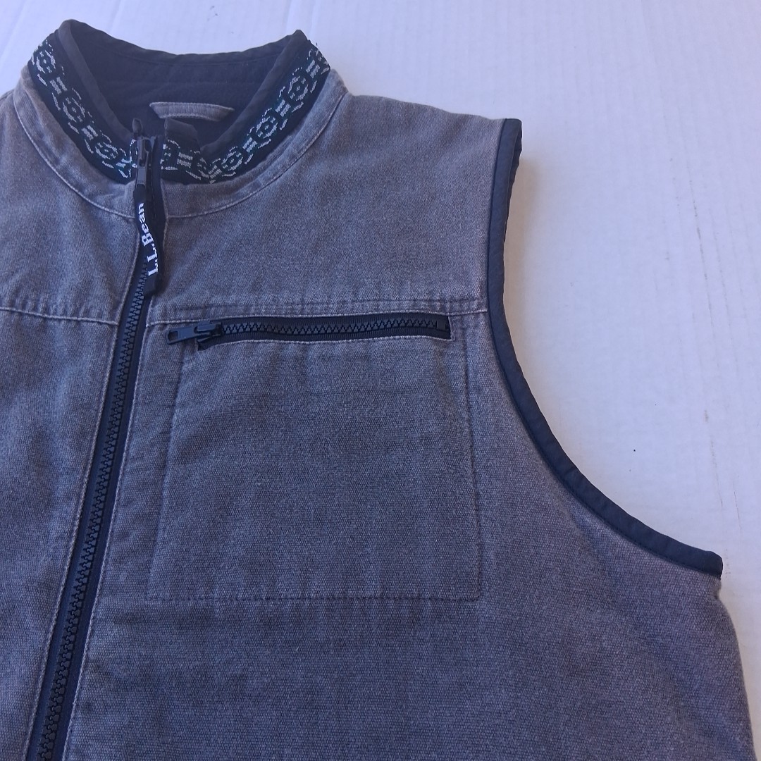 как выглядит LL Bean Full Zip Vest 6 Pockets Kids XL 18-20 Gray Black Polyester Cotton 71341 фото
