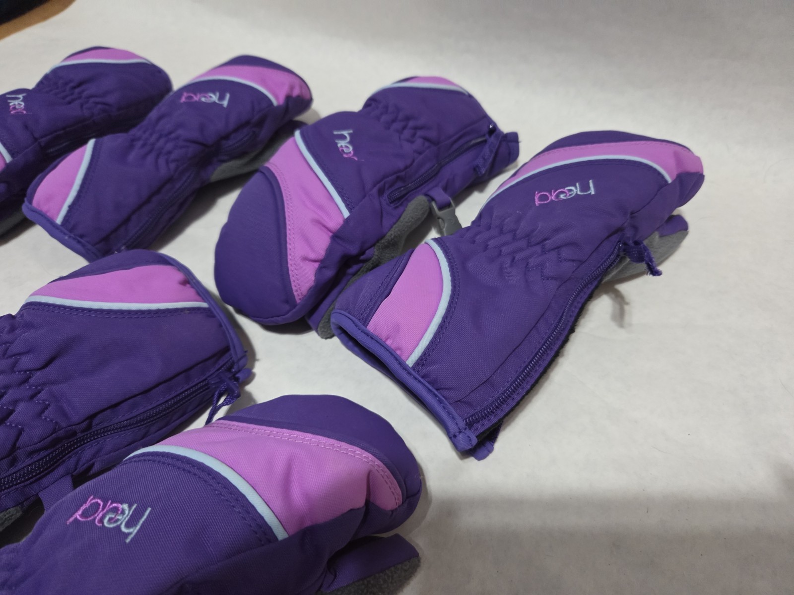 Head Purple Mittens Zip Up, Set Of 3. Youth Size XXS, XS, AND SMALL.