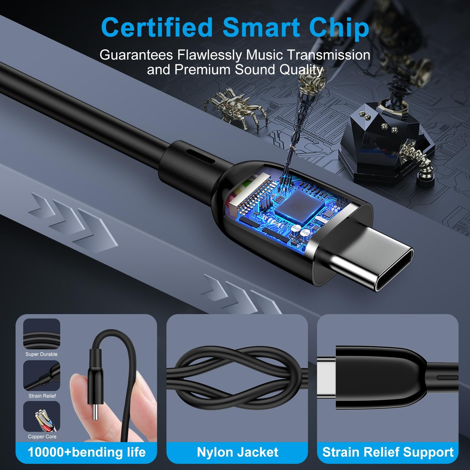 USB C Samsung Headphone Jack Adapter for Galaxy A17 S25 Edge S24 Ultra Black