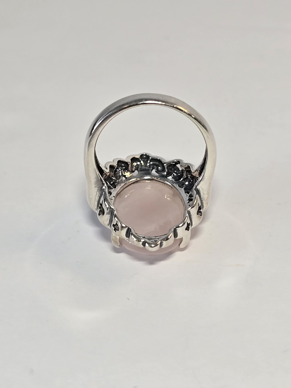 как выглядит Pink Rose Quartz Sterling Silver Ring Scroll Cut Setting 925 Size 6 5.30 grams фото