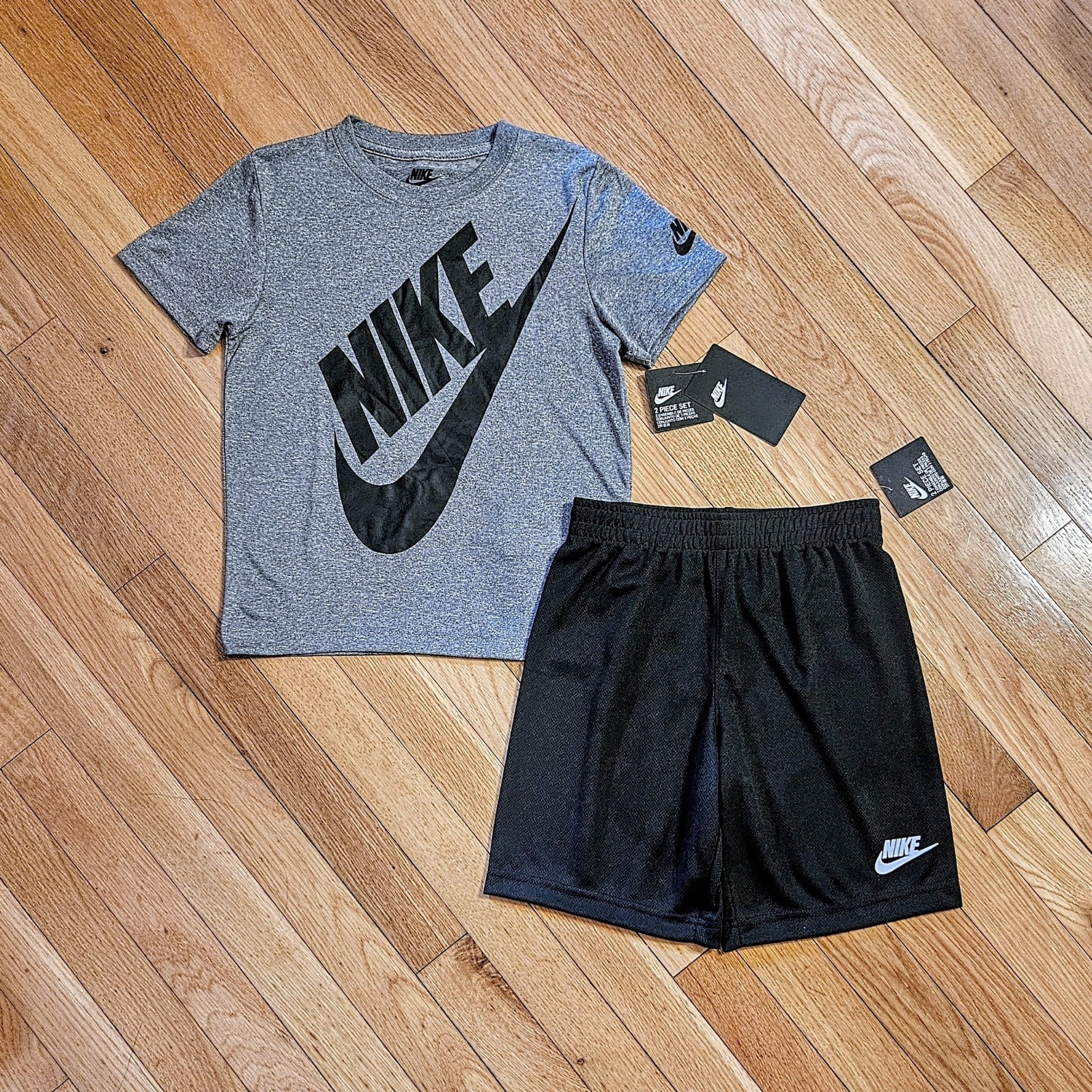 NEW Nike Little Boy Dri-fit Tee Short Set, Gray/Black sz 7