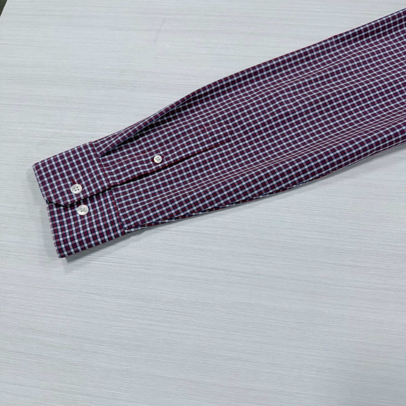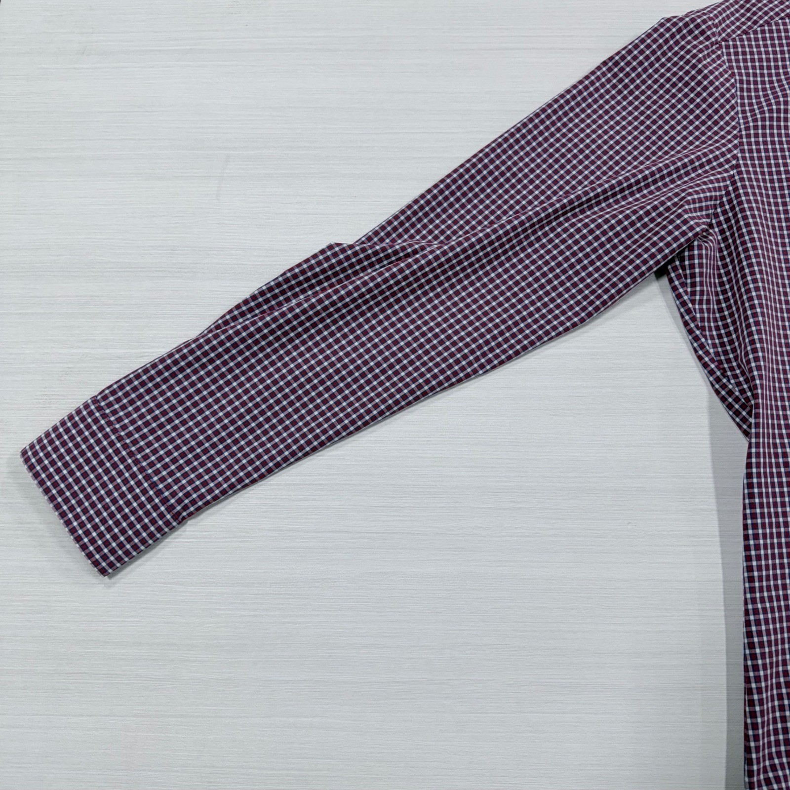 как выглядит Mizzen Main Leeward Dress Shirt Mens XL Trim Fit Burgundy Blue Check Stretch фото