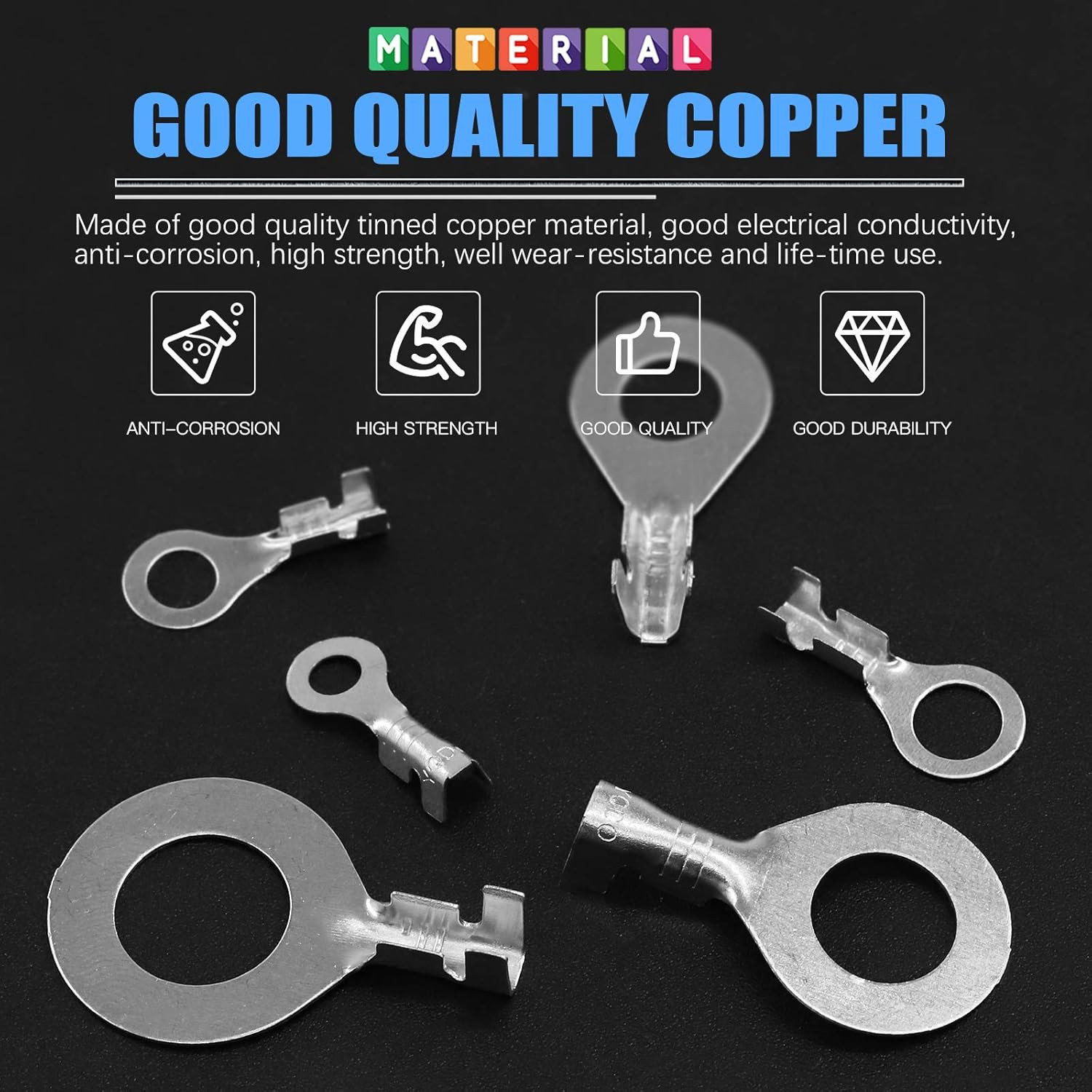 240Pcs Copper Ring Terminal Assortment Set Non - Insulated Lugs Open