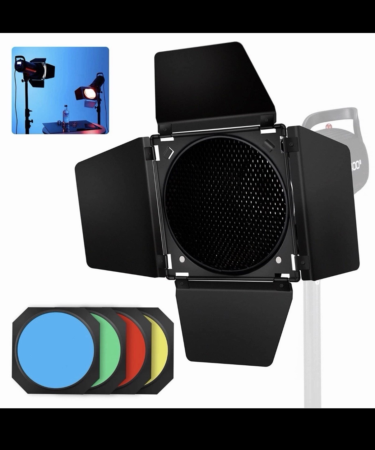 Godox Barn Door Honeycomb Grid 4 Color Gel Filters