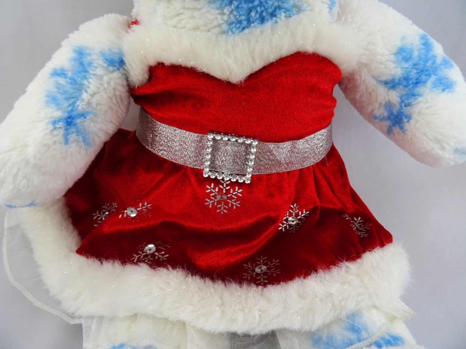 Build-A-Bear Snowflake Teddy White Blue Winter Christmas Plush Red Santa Dress