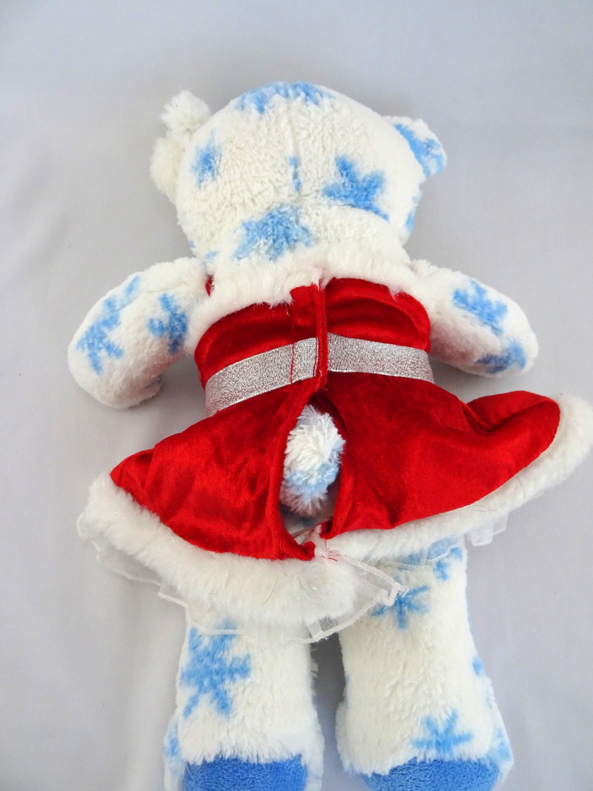 • Build-A-Bear Snowflake Teddy White Blue Winter Christmas Plush Red Santa Dress