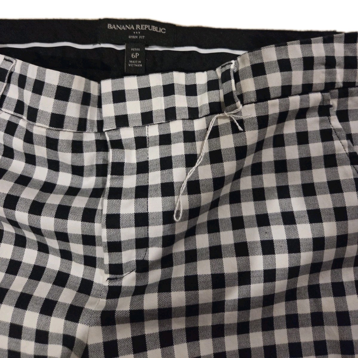 как выглядит Banana Republic Ryan Fit Ankle Trouser Career Pant Gingham Black White Size 6P фото