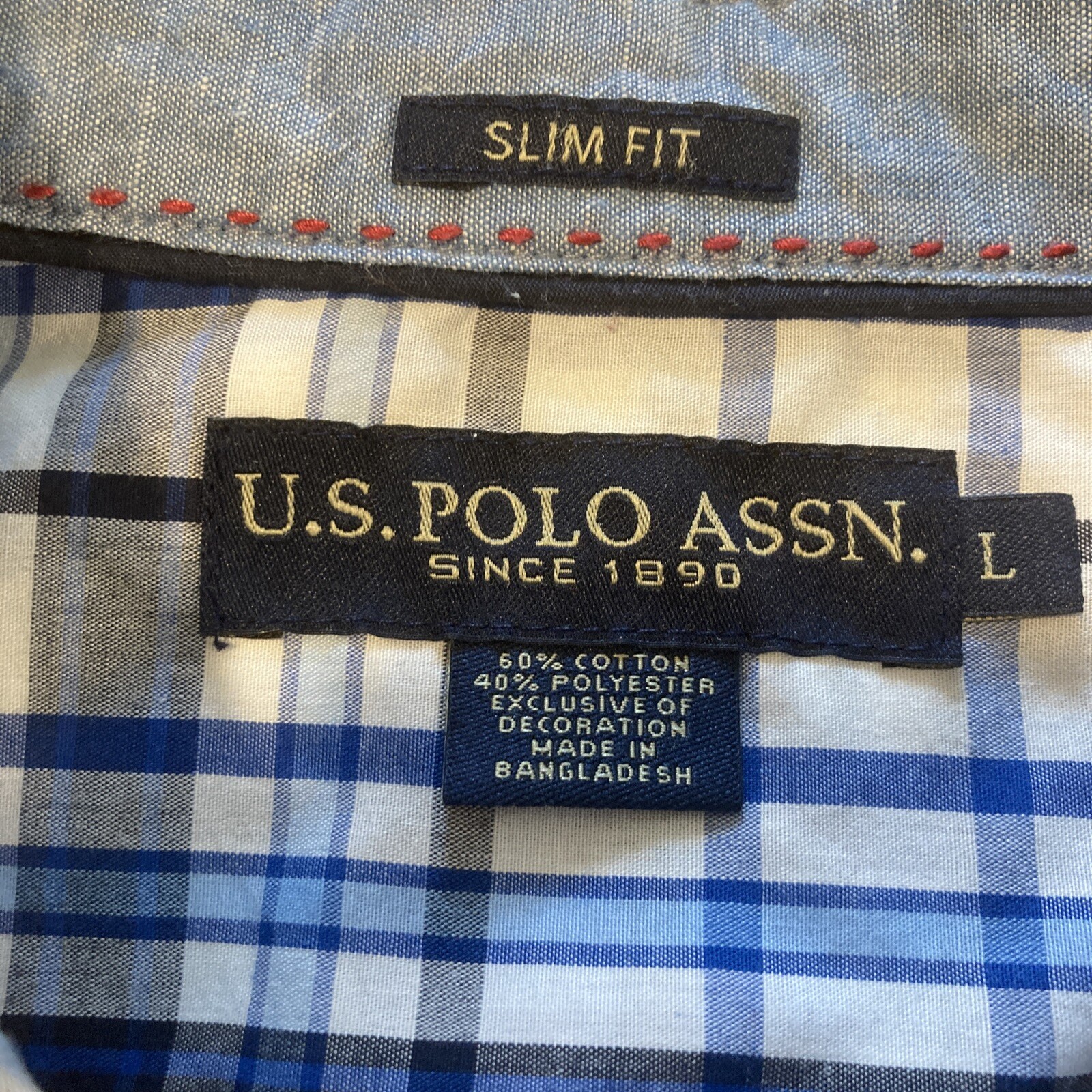 US Polo Assn Men's Shirt Size Large Blue Plaid Slim Fit Button Down Dress Pony