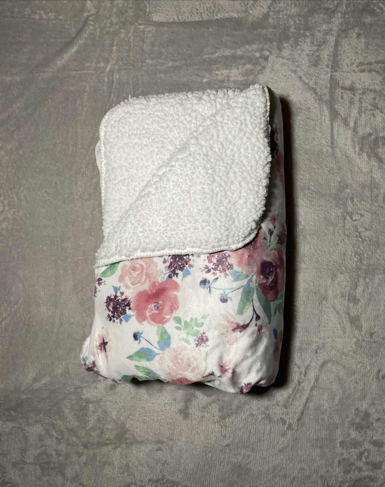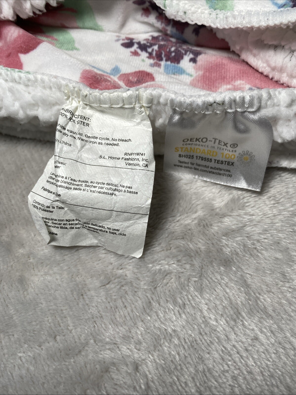 SL Home Fashions Floral Baby Blanket Pink Rose Blue Green Leaf Soft White Sherpa