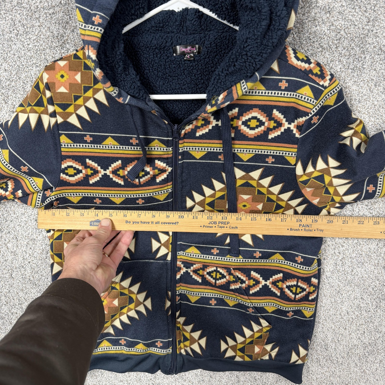 Canyon Creek Hoodie Womens L Blue Aztec Sherpa Lined Full Zip Fleece Southwest