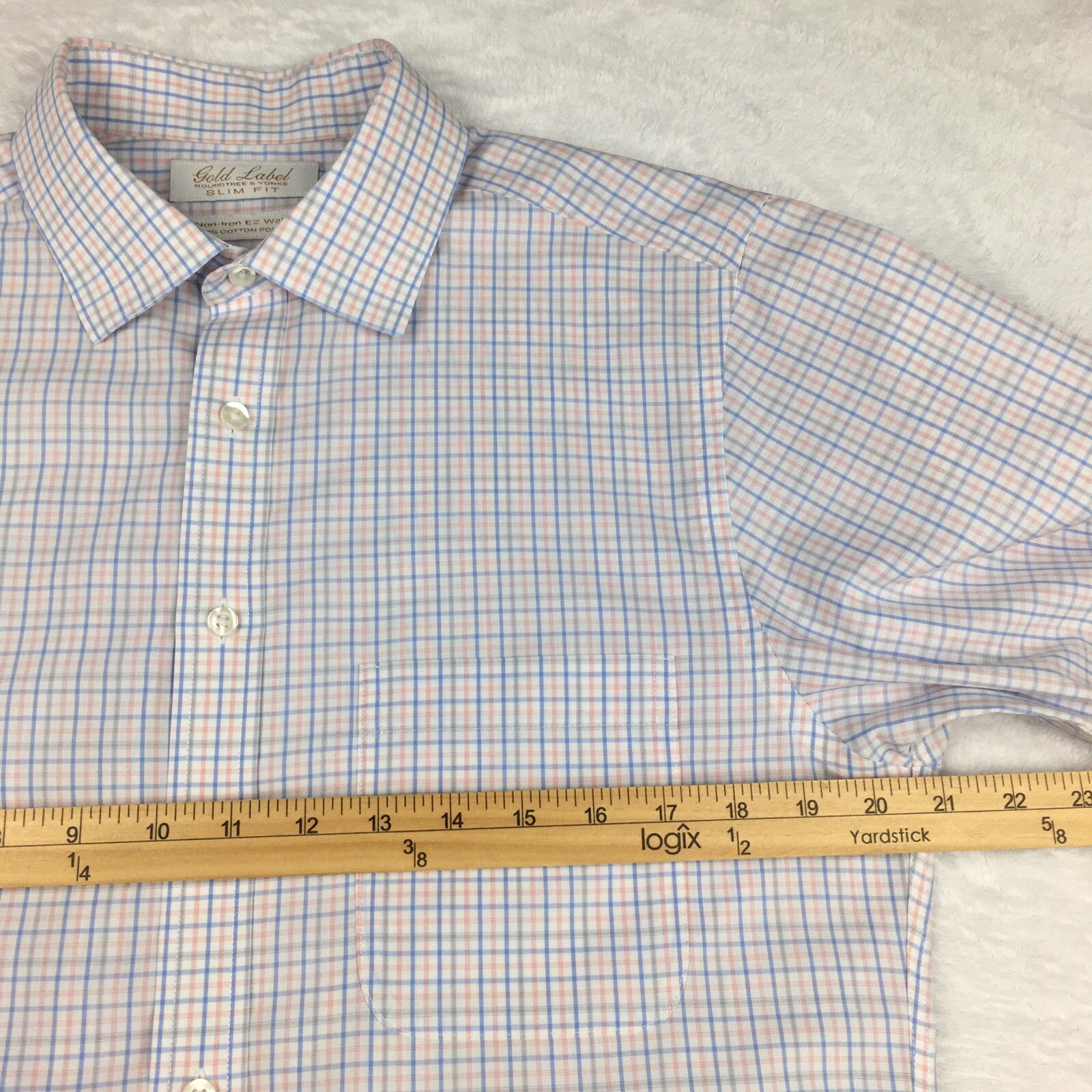 Roundtree Yorke Gold Label Dress Shirt Mens 15.5-32 Pink/Blue Check Slim Fit