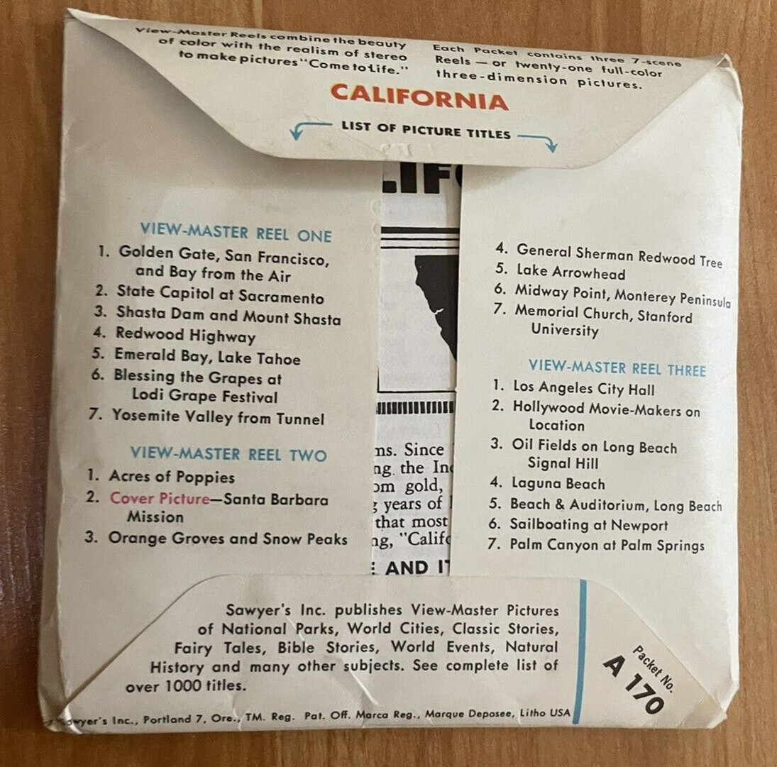 • View Master California 3 Reels And Booklet A170 Vintage Photography 80s 70s