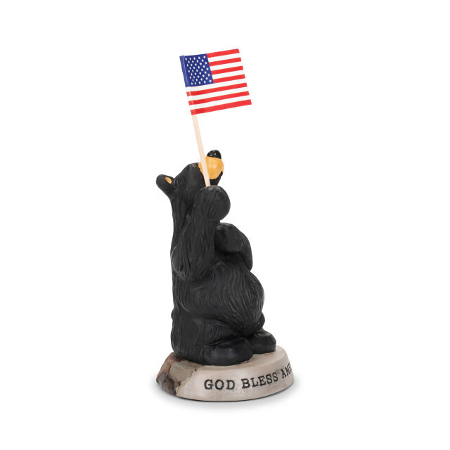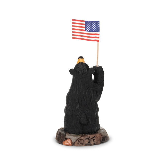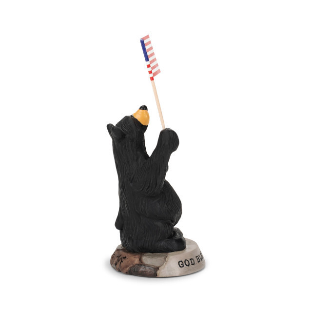 • Black Bear God Bless America Figurine Jeff Fleming Bearfoots Rustic Decor