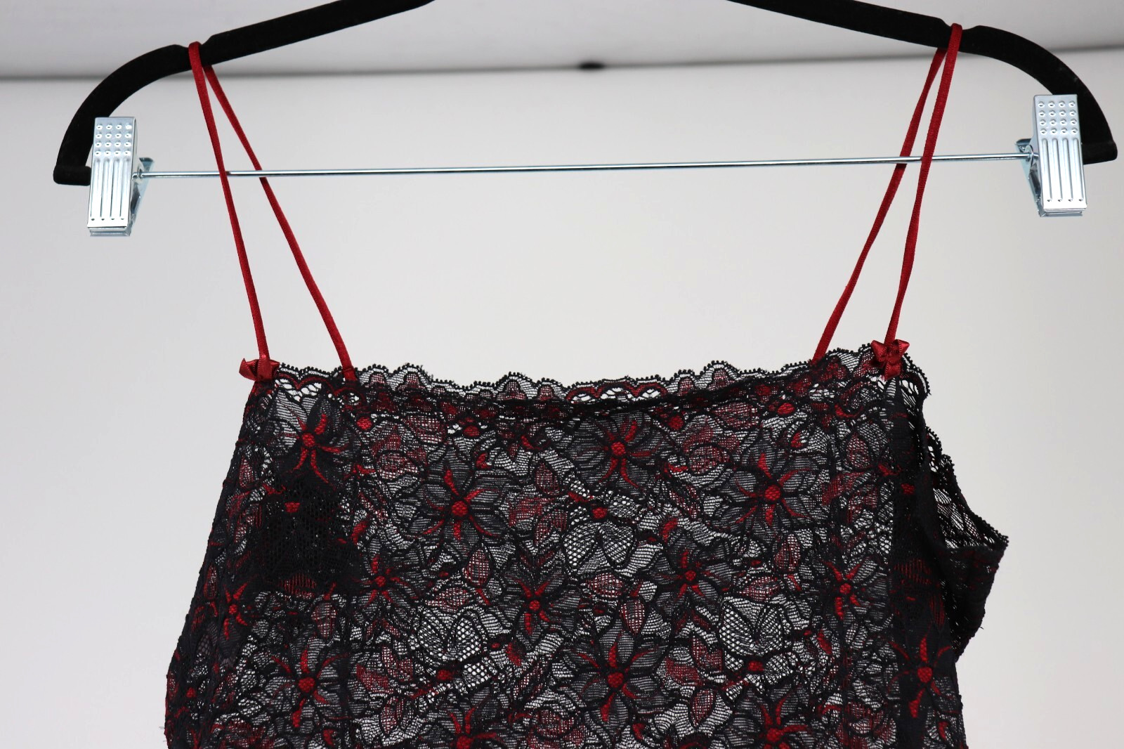 как выглядит Victorias Secret Vintage Slip Dress Medium Black Red Lace Sheer Lingerie Y2K фото