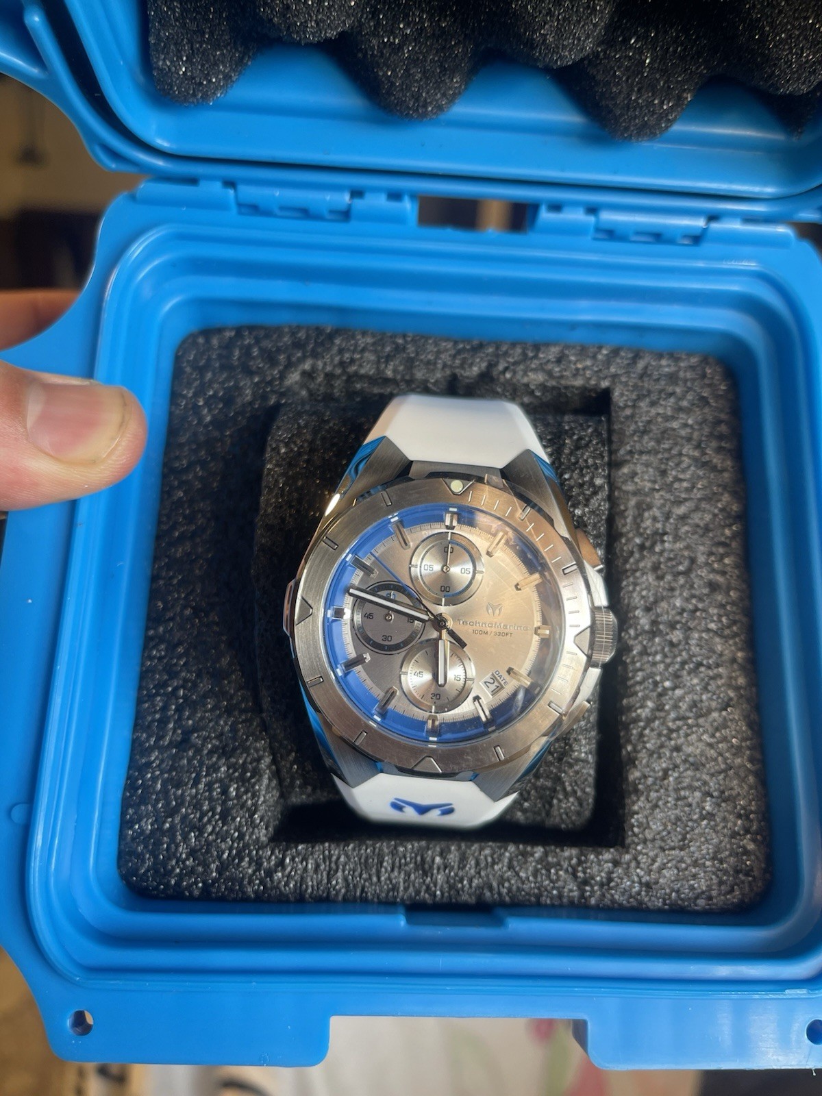 как выглядит TechnoMarine Ocean Victory Mens Quartz Watch Chrono White/Silver TM-318136 NIB фото