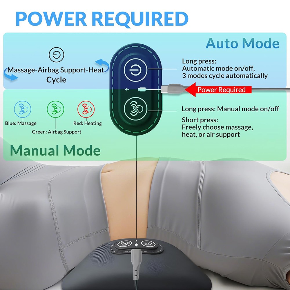 3 In 1 Electric Lumbar Support Pillow Smooth Spine Triple Fusion Back Massager