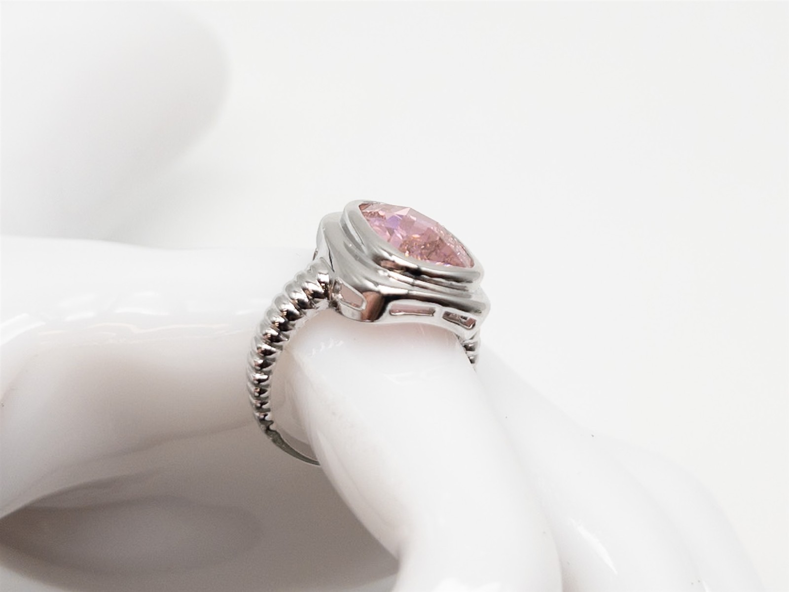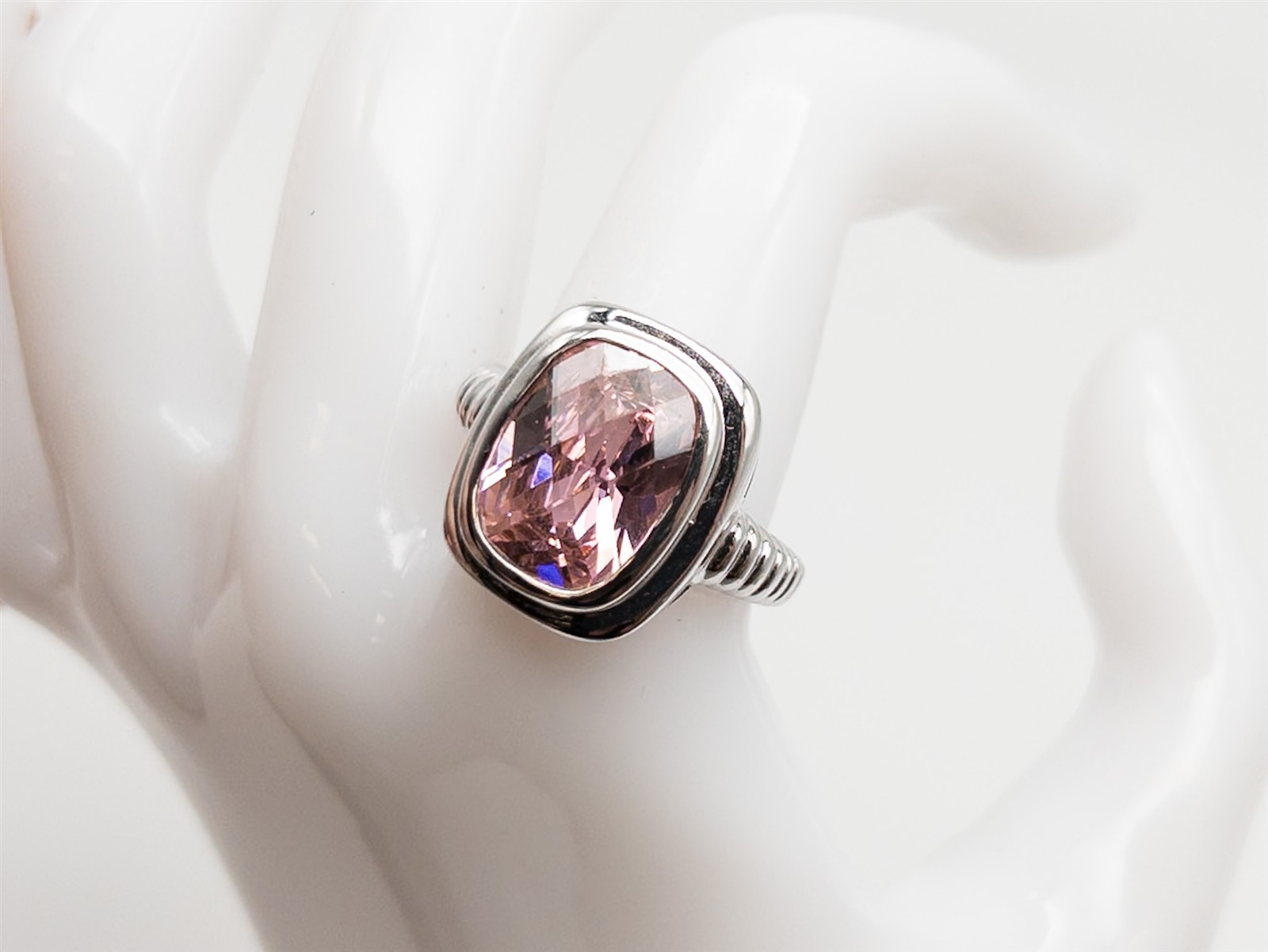 как выглядит Designer 250 7ct Lab Created Pink Sapphire Cushion Cut Sterling Silver Ring фото