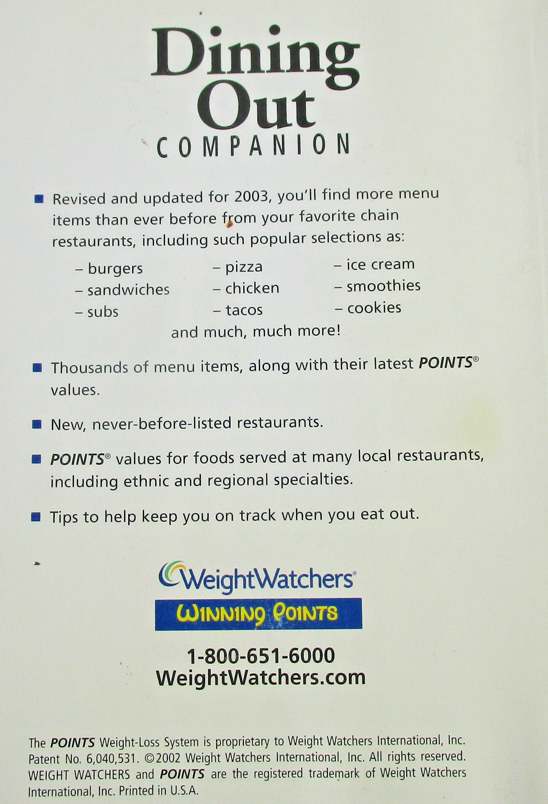 Weight Watchers Winning Points Complete Food Dining out Companion WW book set