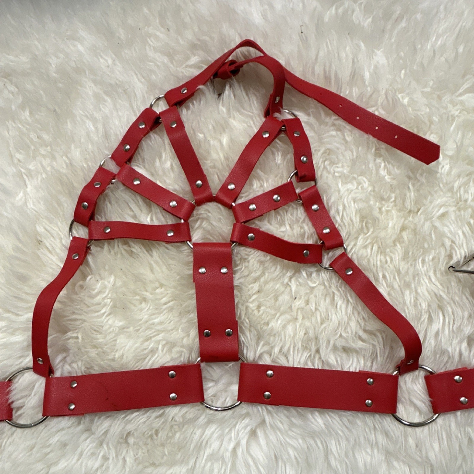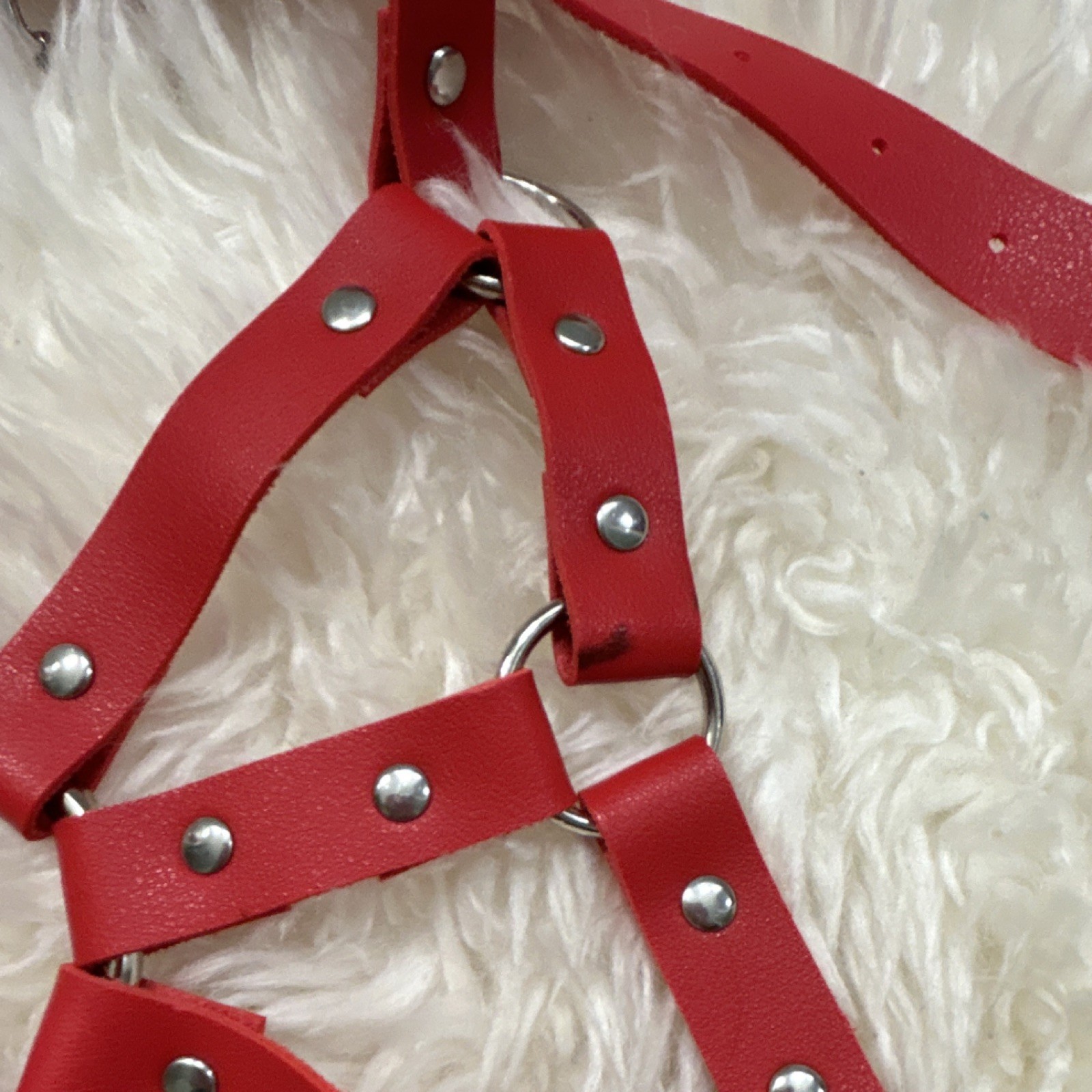 как выглядит Red Faux Leather Strap Ring Adjustable Garter Belt Punk Gothic Harness фото