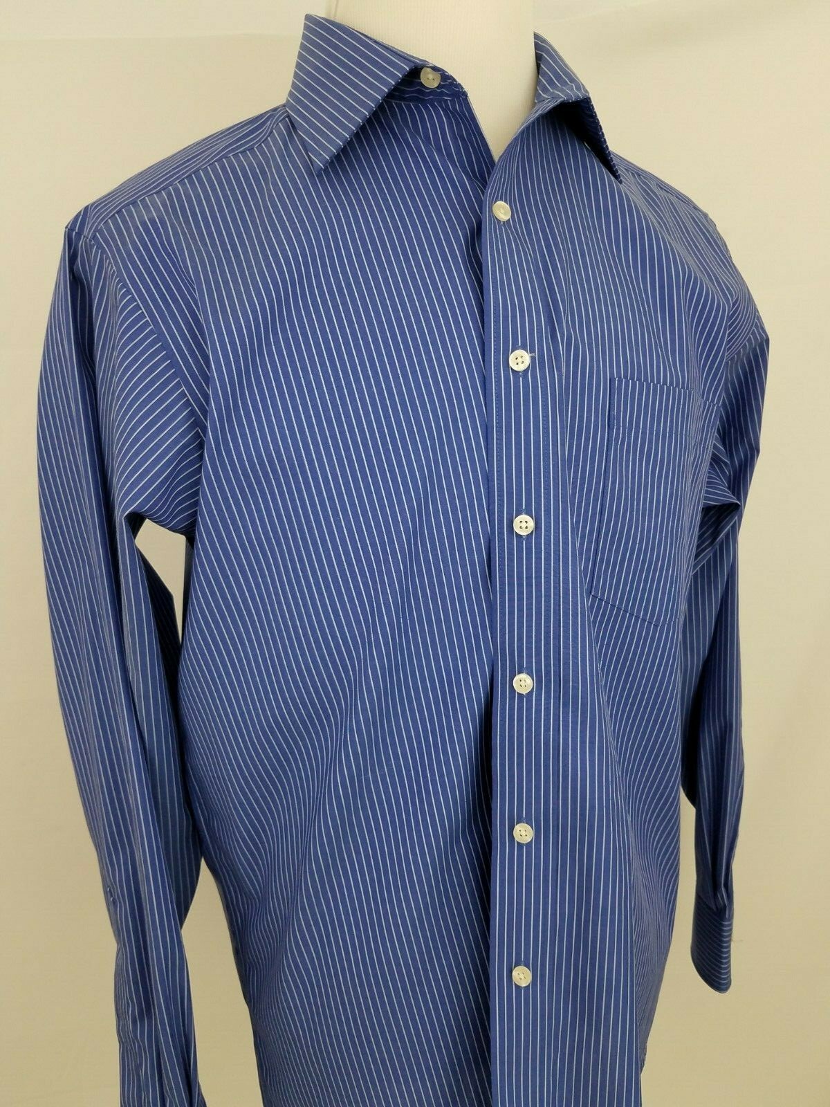 Chaps Non Iron Classic Fit Blue Striped Long Sleeve Shirt 16 1/2 34-35
