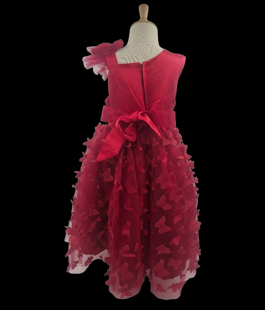 Maroon Tulle Overlay Easter Pagent Church Party Butterfly Dress Size 4T
