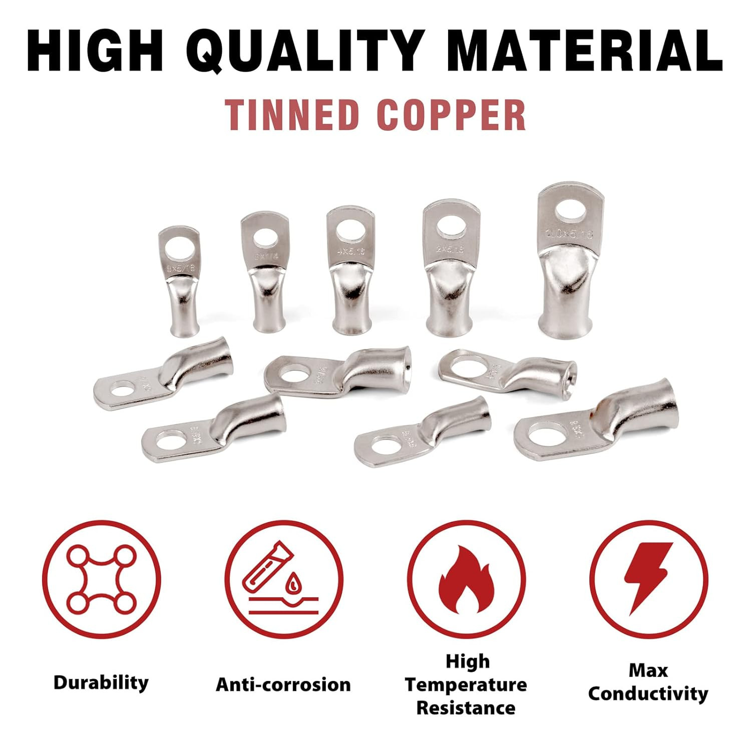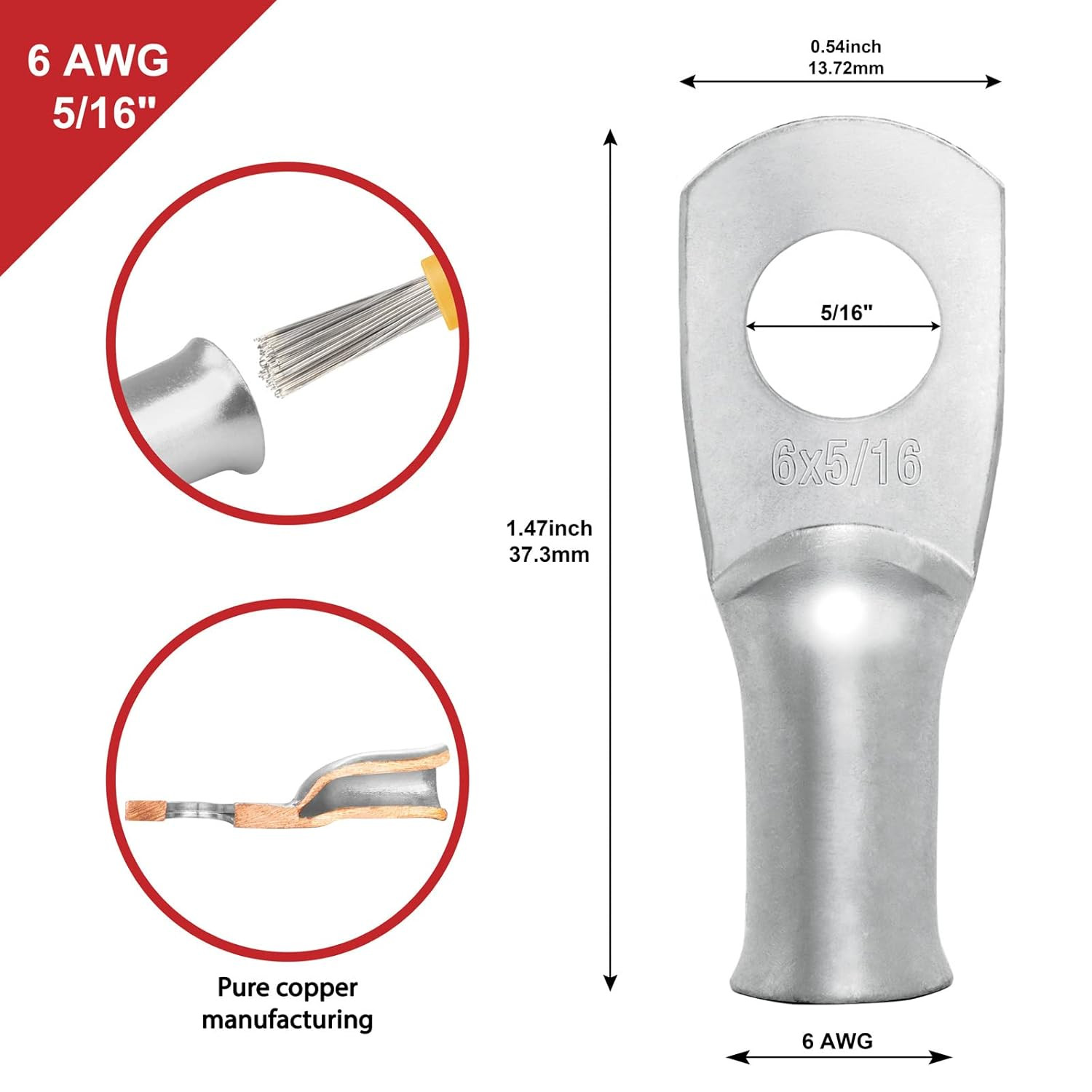 10Pcs 6 AWG - 5/16 Tinned Copper Wire Lugs Ring Terminals, Marine Grad...