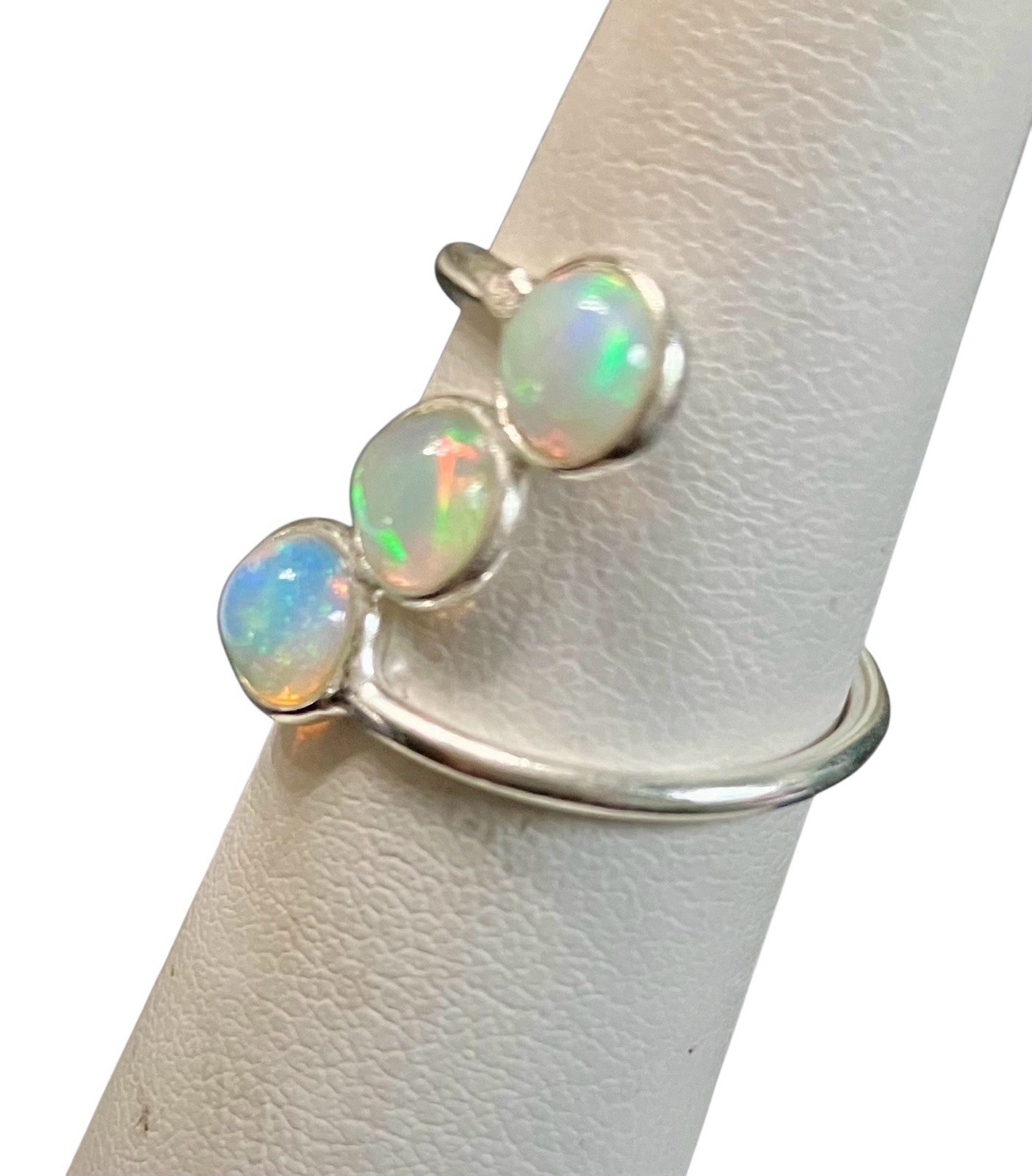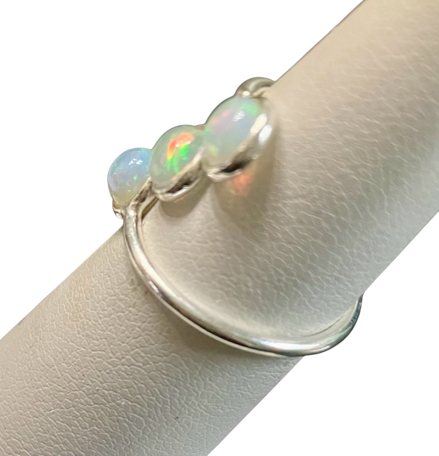 3 Stone Genuine Natural Ethiopian Opal 925 Sterling Silver Ring NEW Size 7