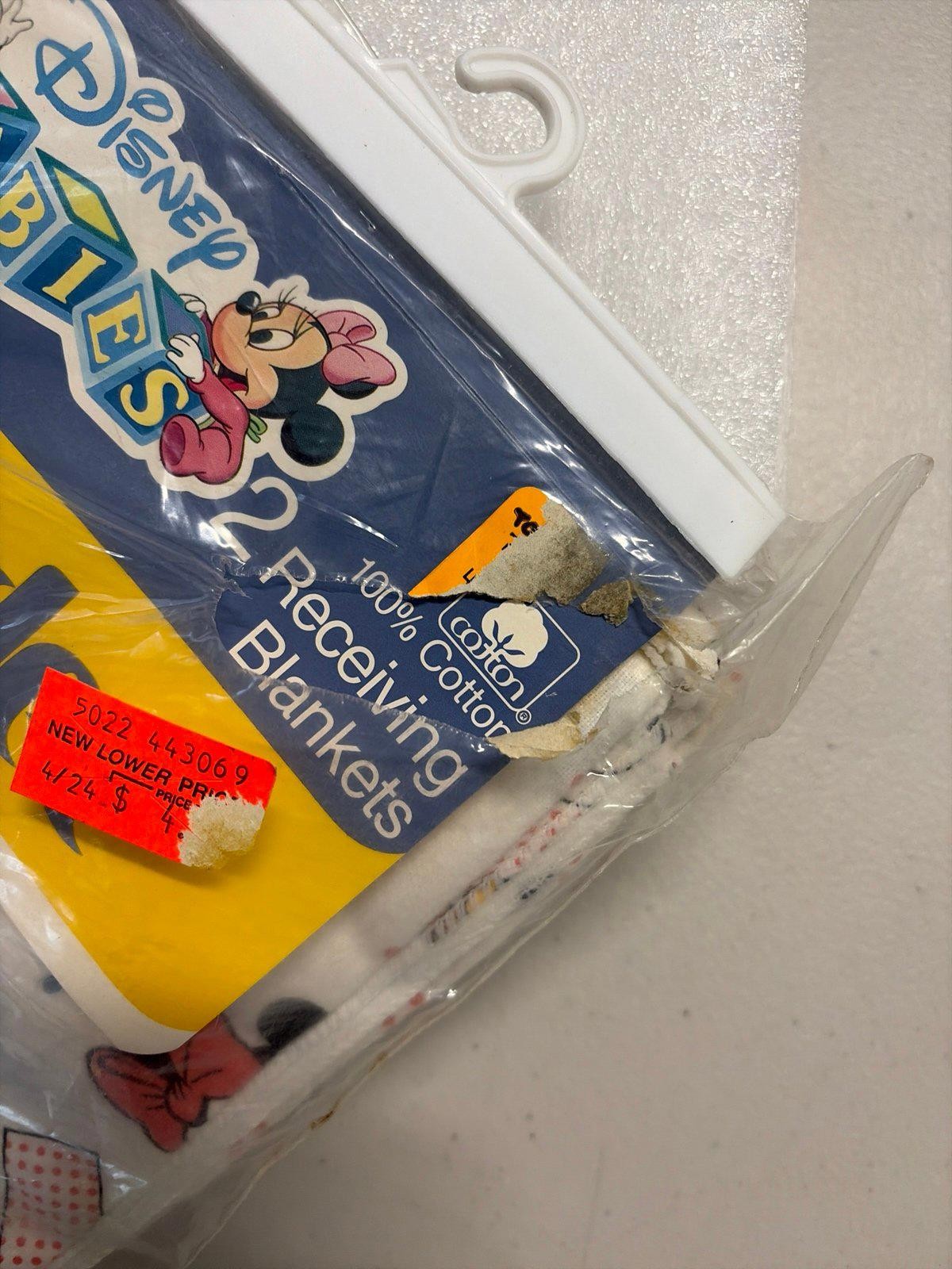 как выглядит Vintage 1984 Unopened Disney Babies 2 Cotton Receiving Blankets 30" x 40" фото