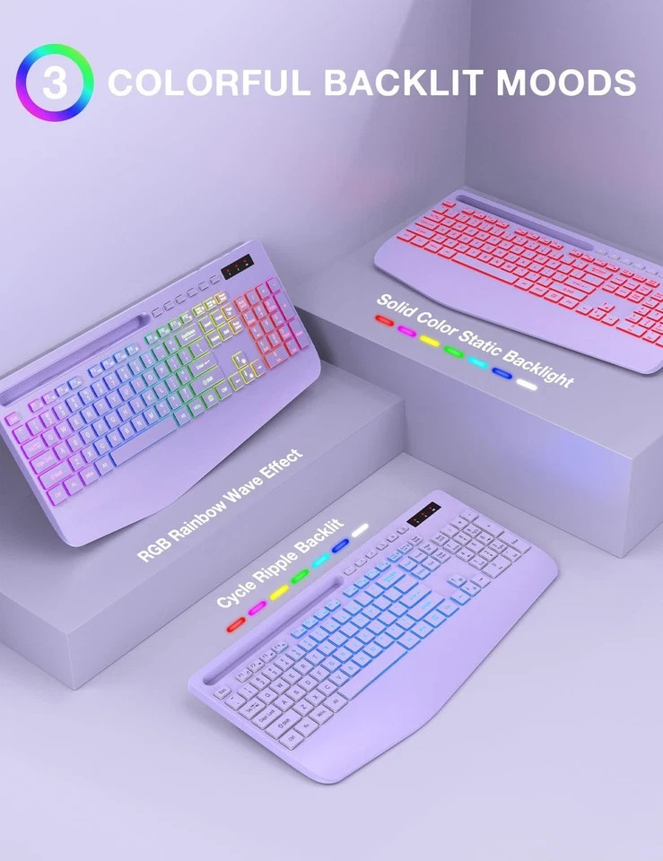 Wireless Keyboard and Mouse Combo, 9 Backlit Effects, Wrist Rest, Pho...