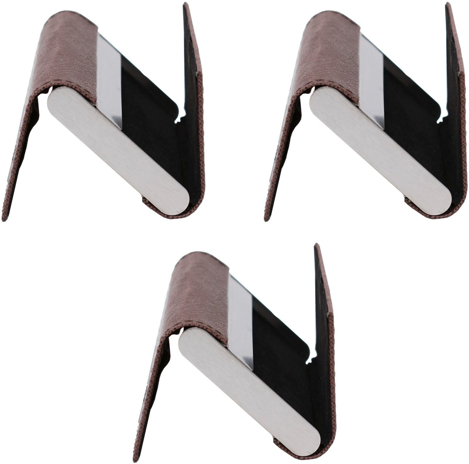 Set of 3 Double Sided Brown Faux Leather Business Card Cases