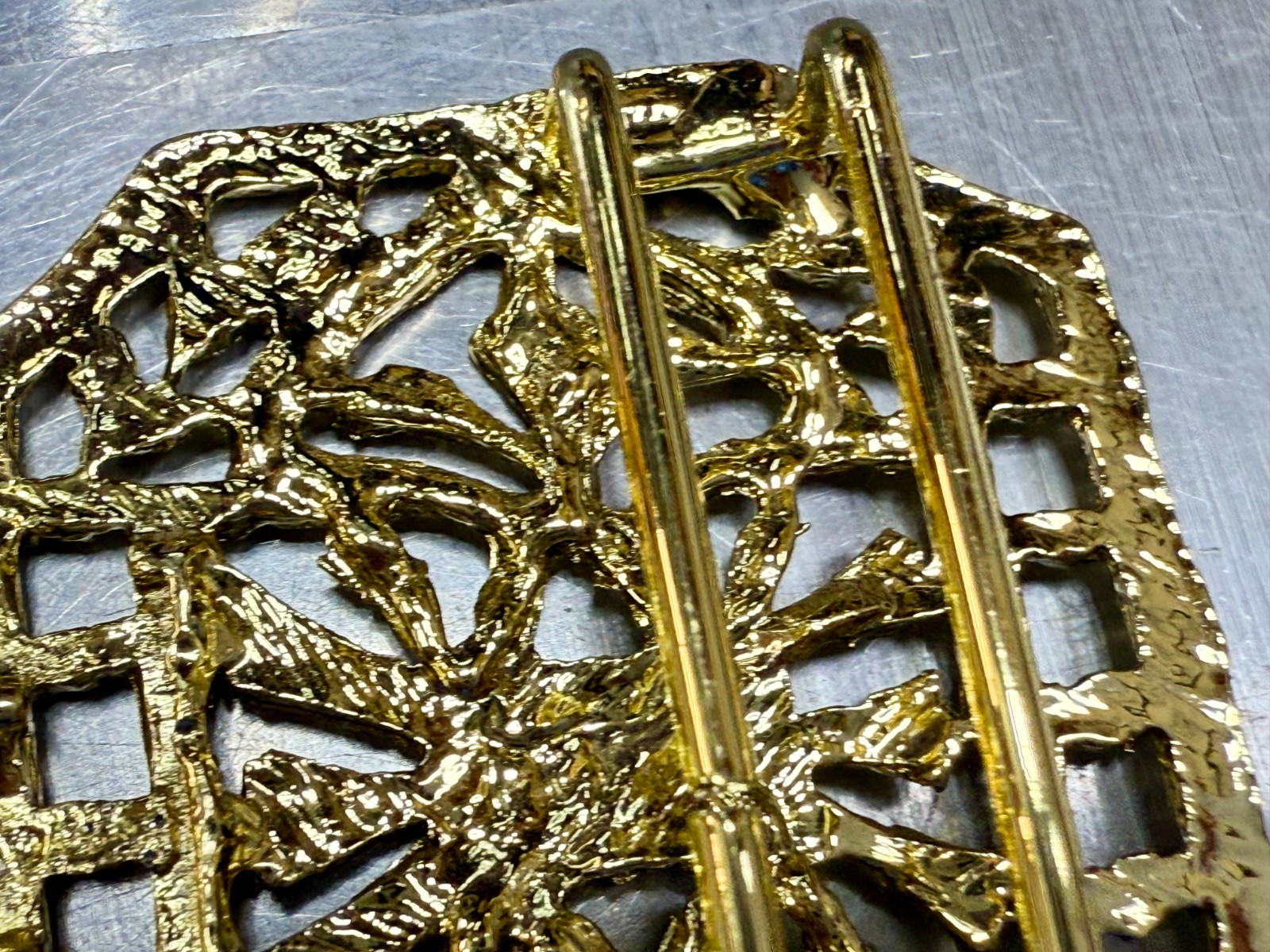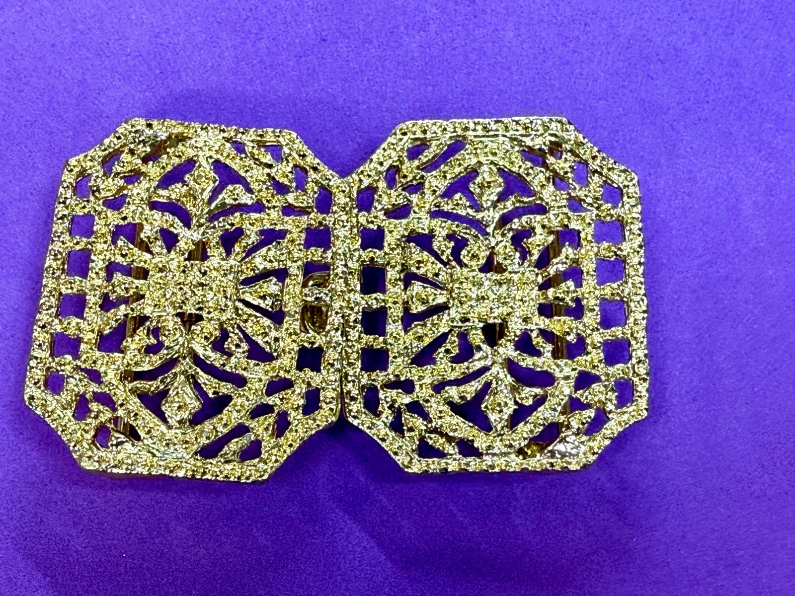 как выглядит Openwork Filigree Ornate Interlocking Two Piece Vintage Gold Tone Belt Buckle фото