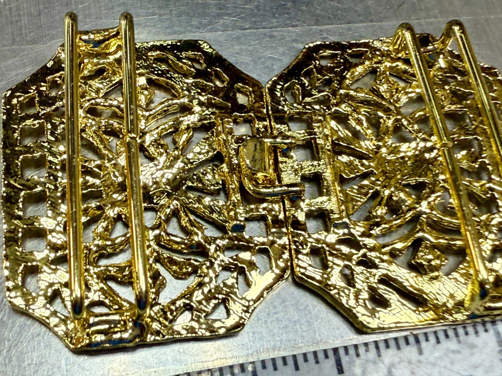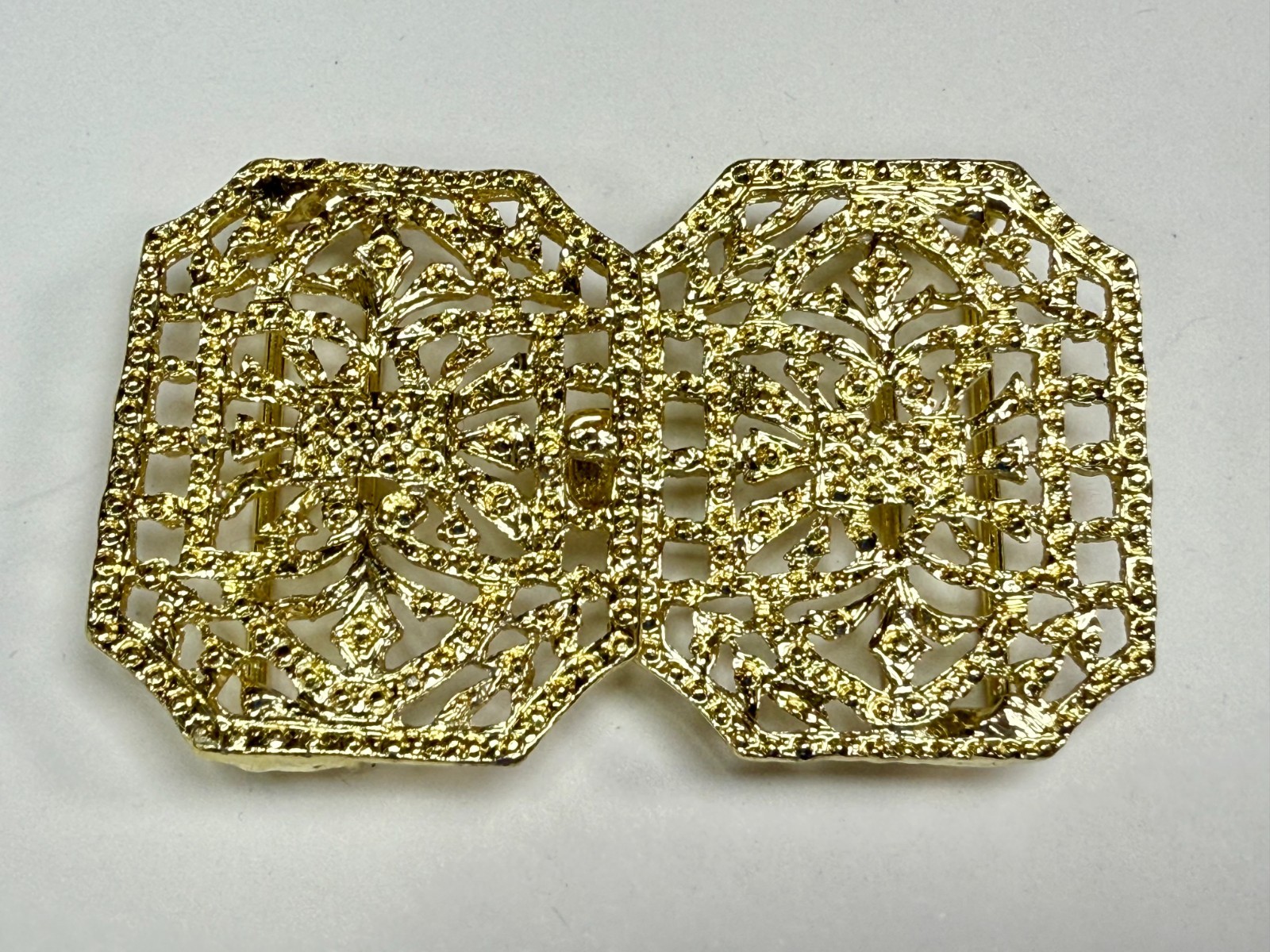Openwork Filigree Ornate Interlocking Two Piece Vintage Gold Tone Belt Buckle