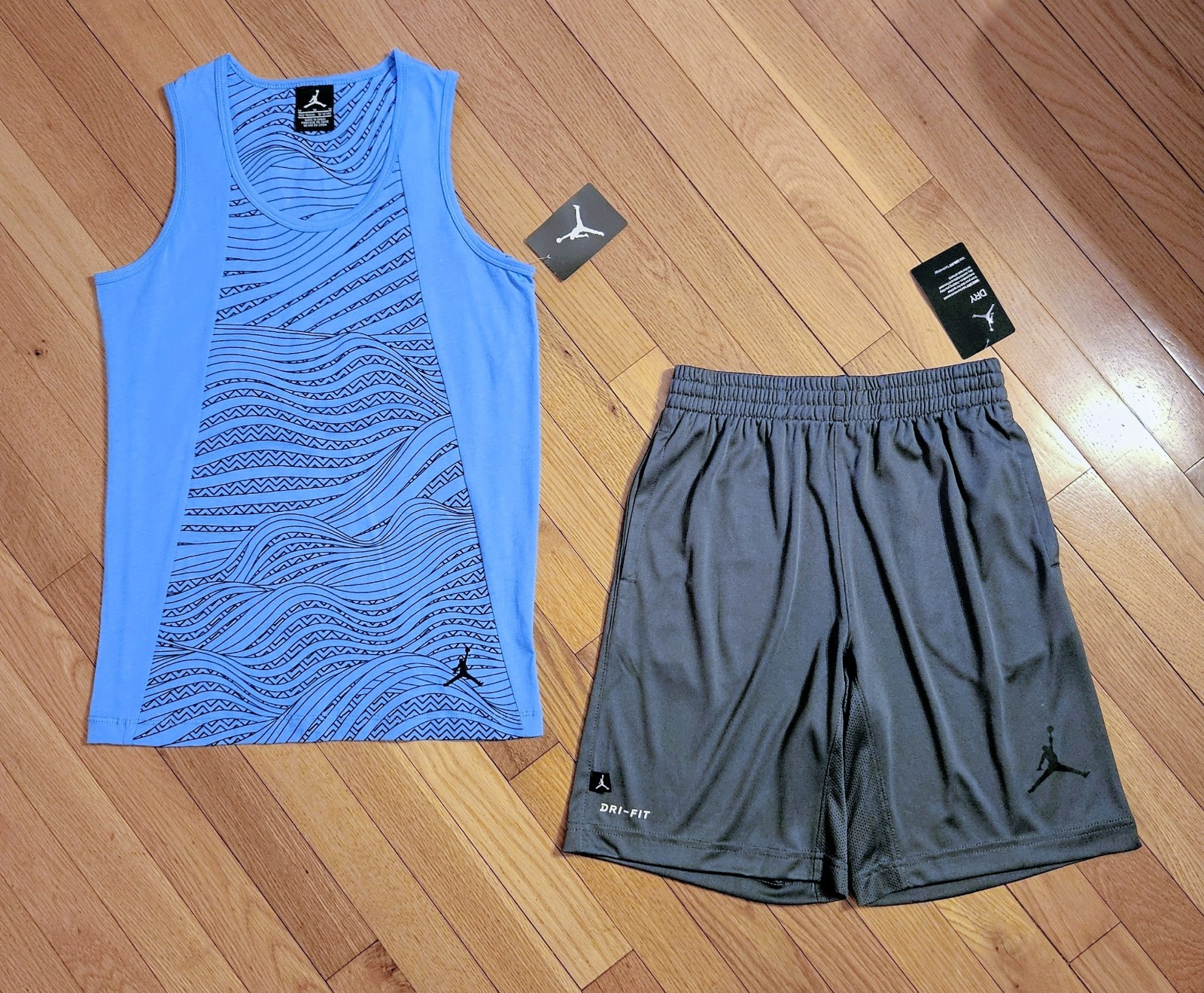 NEW Nike Jordan Youth Big Boy Unisex Tank Top Short Set, Blue/Gray YM