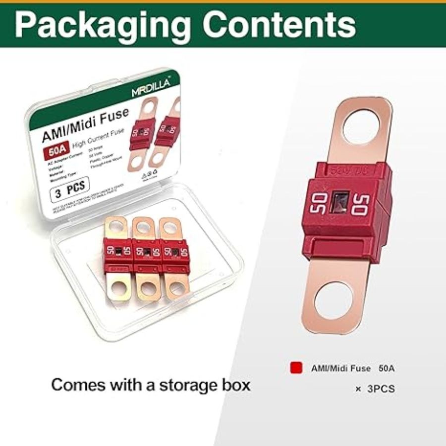 Midi Car Fuses 50 Amp High Current Fuse, Bolt-on Fuse for Cars,Fuses-50A-3PCS