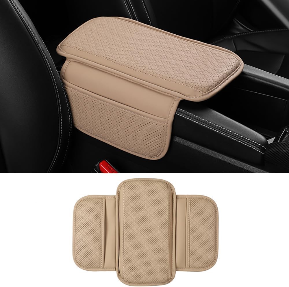 Upgraded Car Center Console Cover, Microfiber Leather Car Armrest Cover Beige