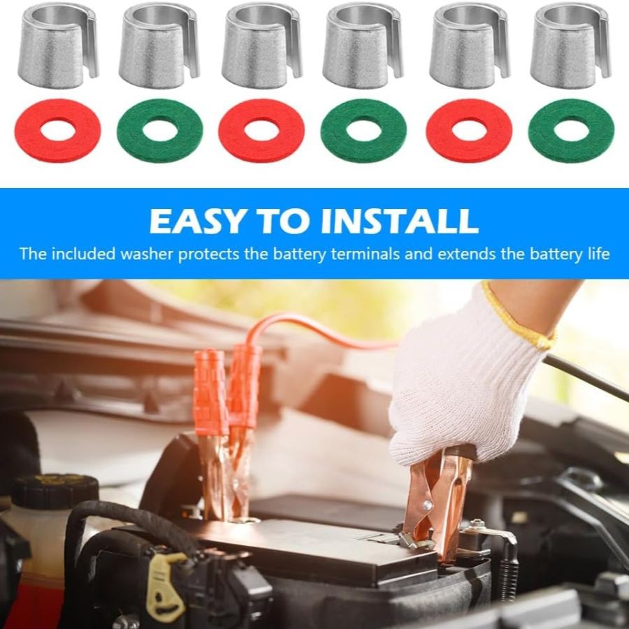 10PCS Car Battery Post Terminal Shims Kit with Washers - Silver Color Terminal E