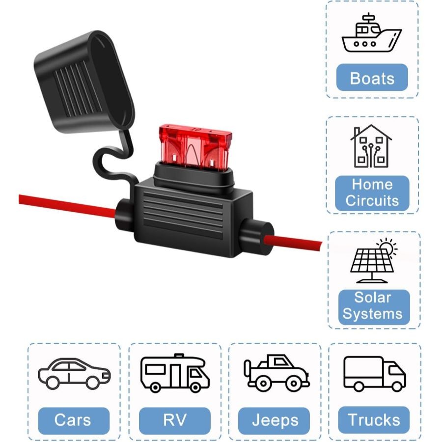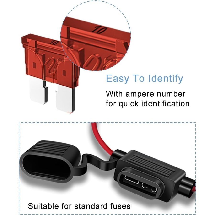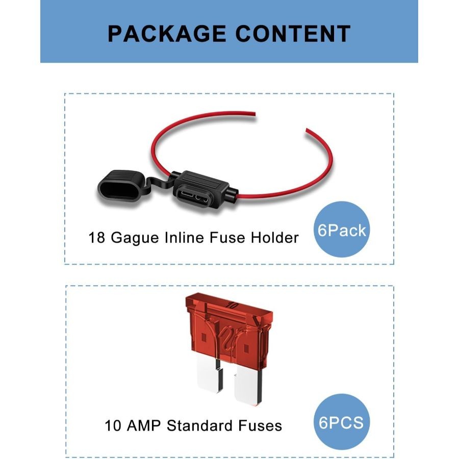 6 Pack Inline Fuse Holder - 18 Gauge Automotive Blade Fuse Holder with 6pcs 10 A