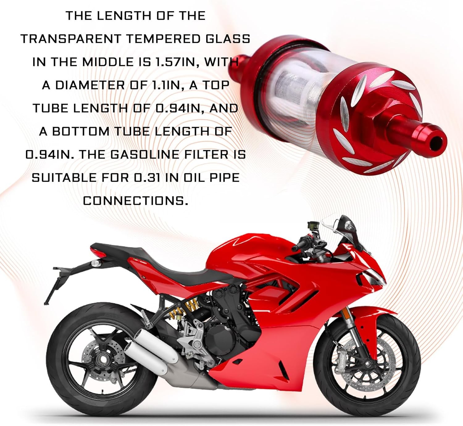 Inline Fuel Filter Small Engine Fuel Filter Detachable Metal Glass Vehicle Red