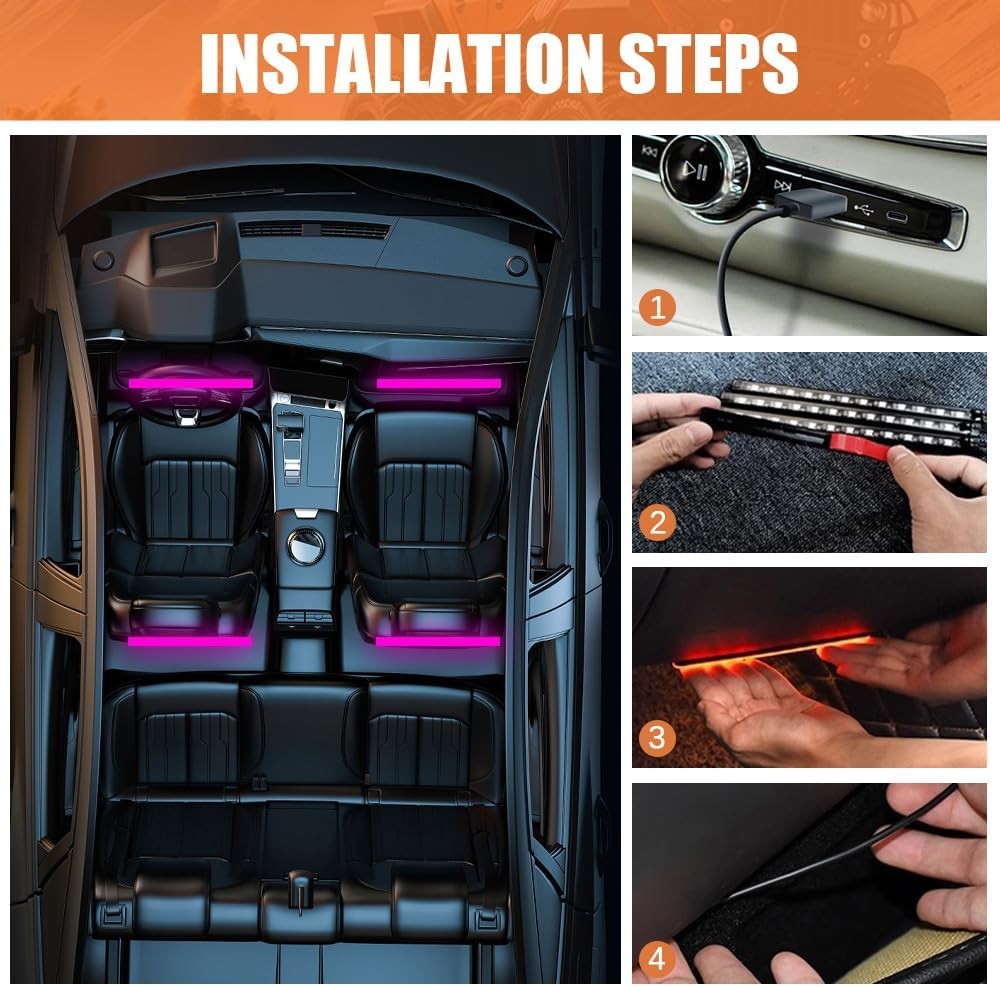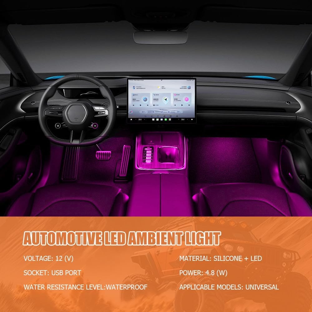 LED Strip Light, 24 LED RGB Auto Under Dash Interior Atmosphere Lights-Fuchsia