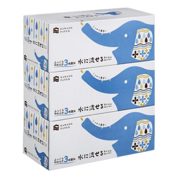 Kono Paper Flushable 3-Ply Box Tissues 120 Pairs x3, Made in Japan