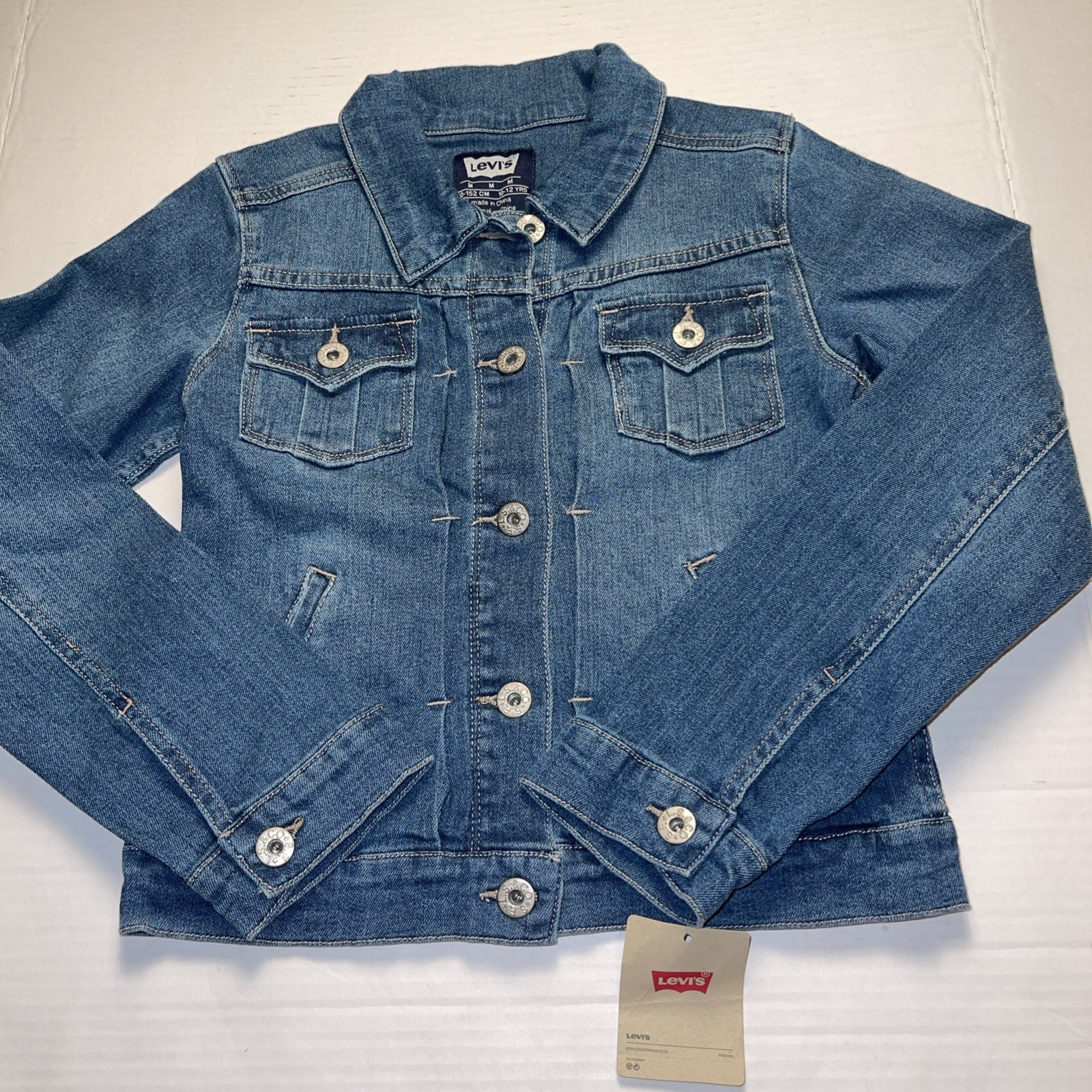 Levis Jacket Kids Unisex 10-12 Denim Trucker Button Front Pockets Cotton