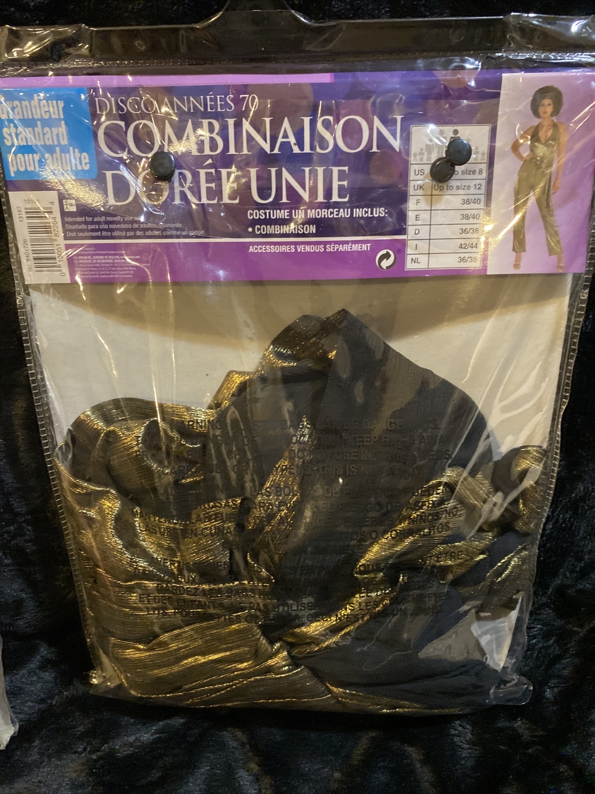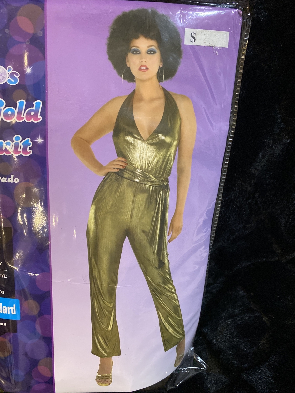 Disco 70 s Solid Gold Jumpsuit Costume Halloween One Piece Standard Adult Size