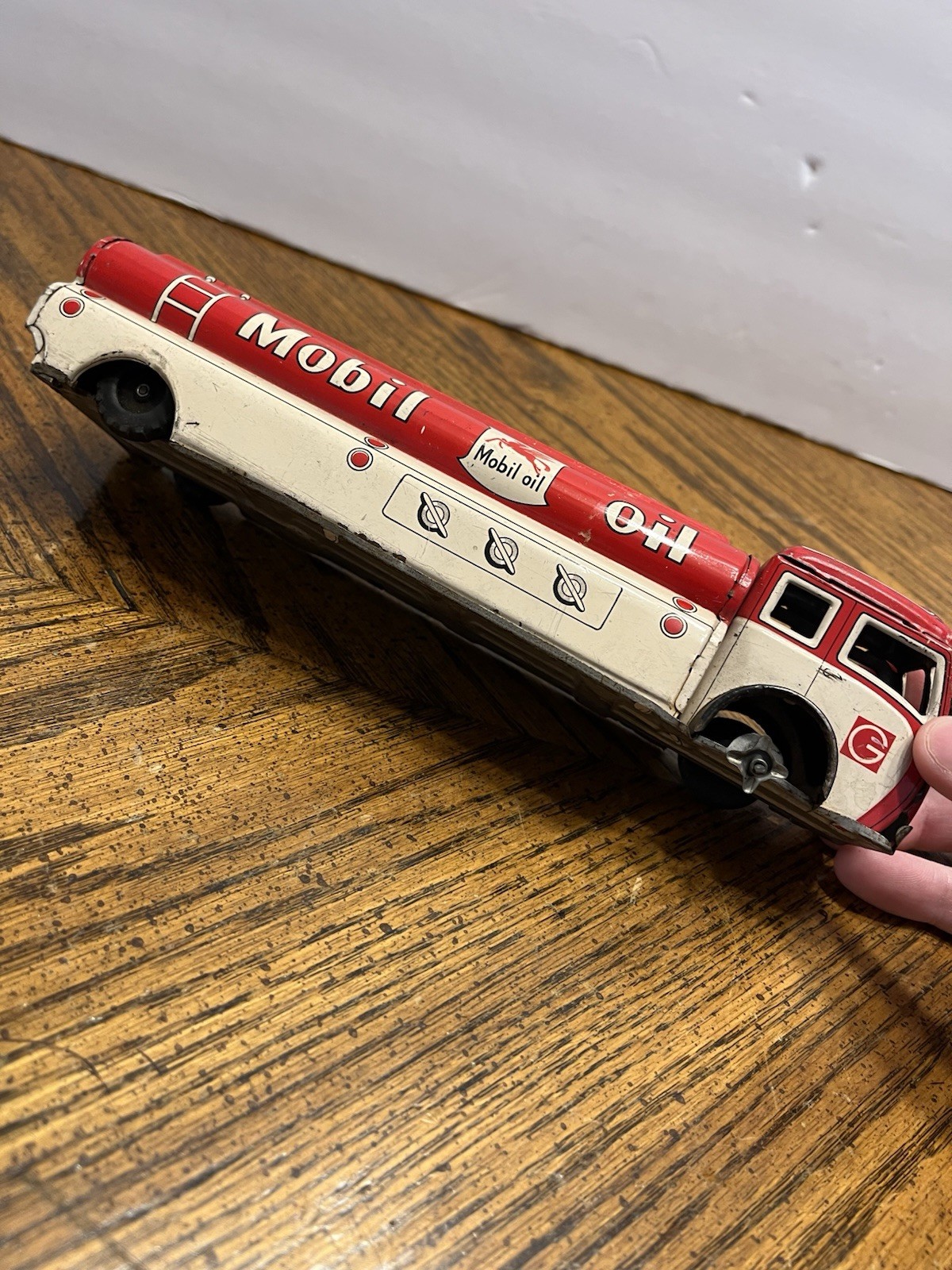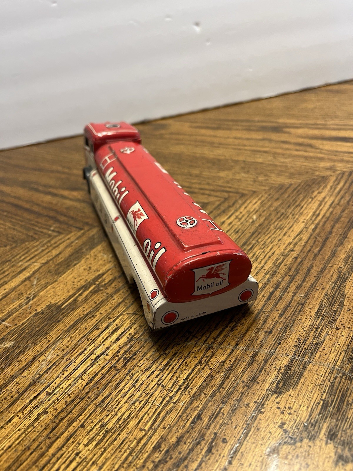 Vintage 1950s Japan Tin Friction Mobil Gas Pegasus Tanker Truck Toy