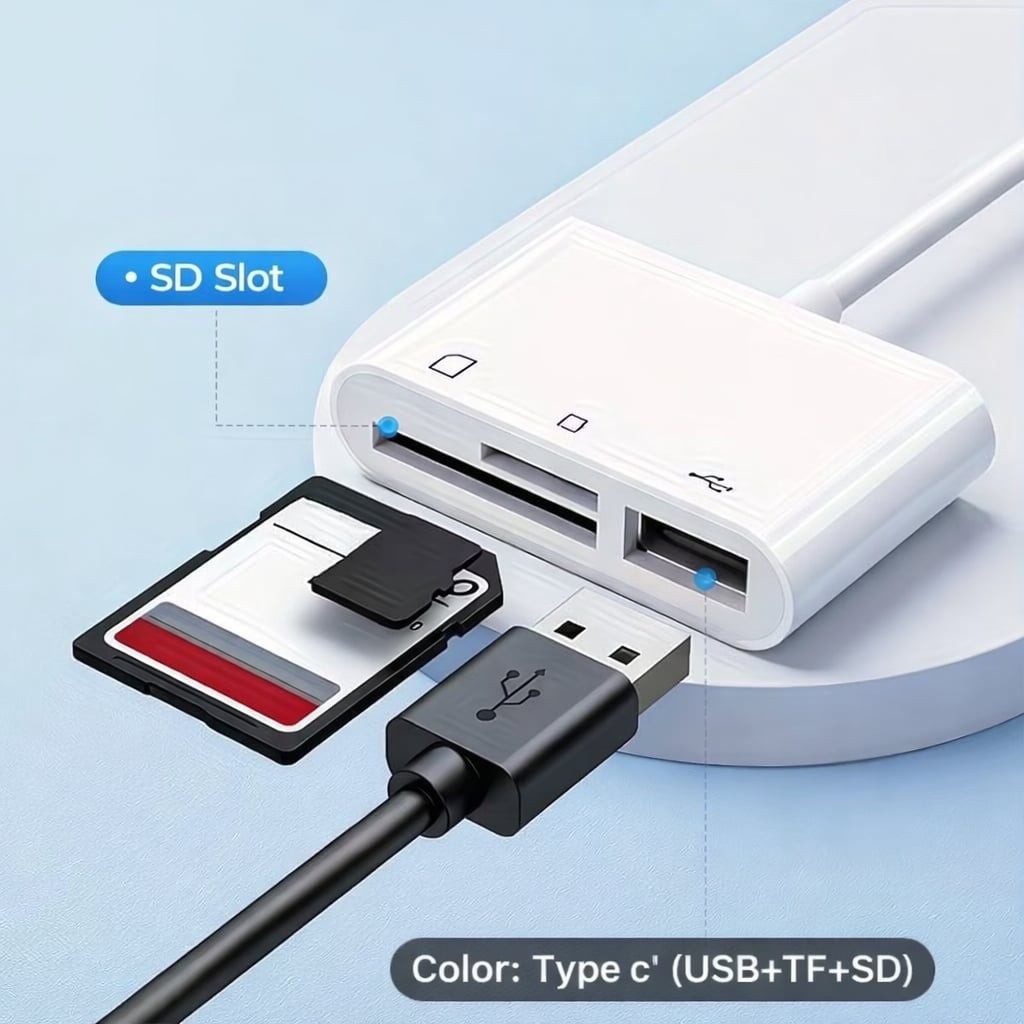 HOVEYO USB-C 3-in-1 Card Reader Hub - SD, Micro SD, and USB Adapter - White
